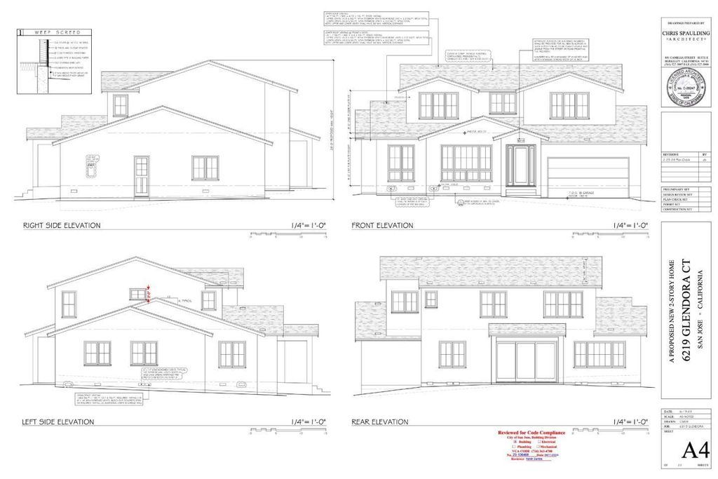 Nestled at the base of the Santa Teresa Foothills, this 4 bedroom-plus office, 3.5 bath newly constructed home is one of four custom homes with over sized lots in the established cul-de-sac neighborhood of Glendora Court. This home is both modern and warm, mixing with an abundance of natural light. The first floor boasts a beautiful bedroom suite, powder room, living room with fireplace, dining room and great room with an additional fireplace. The family style, eat-in kitchen has Italian Cabinetry and storage areas with a sleek quartz waterfall style center island. The upstairs has a sumptuous master retreat with a fireplace and a huge walk in closet. There are 3 other bedrooms upstairs with one of them being a perfect office or flex space! There are beautiful European Oak wide plank hardwood floors throughout the home! The terraced backyard with Keystone walls is a substantial blank canvas of space and privacy and possible ADU. The 3-car garage is fully finished and EV ready, equipped with owned Solar with battery back up. The home is also pre-wired for security systems. Glendora Court in the Hidden Glen South area, is the perfect country sanctuary, yet only minutes away from commuter routes Highways 85 and 87, Almaden Expressway, golf, walking and running trails. .