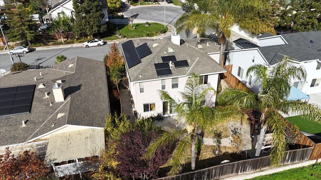 Welcome to this inviting 4 bedroom, 2.5 bathroom home tucked inside a quiet cul de sac in the heart of Gilroy. Built in 2004 with 2,094 square feet of living space, this two story residence offers an open concept layout that feels bright, spacious, and perfect for both everyday living and entertaining. Vaulted ceilings greet you as you enter the large family room, which flows naturally into a warm and functional kitchen featuring granite countertops, hardwood flooring, and a generous walk-in pantry. All four bedrooms are located upstairs for privacy and convenience. The primary suite offers a relaxing retreat with dual sinks, an oversized soaking tub with jets, and a separate shower. The backyard is beautifully maintained with greenery and fruit trees, creating a peaceful space for outdoor dining, gardening, or weekend gatherings. The home sits on a 5,340 square foot lot and includes a two car attached garage along with a wide driveway for additional parking. This location provides easy access to schools, shopping, parks, and major commuter routes. With no HOA and a welcoming neighborhood feel, 160 Trimble Ct offers comfort, charm, and move-in ready living for its next owner.