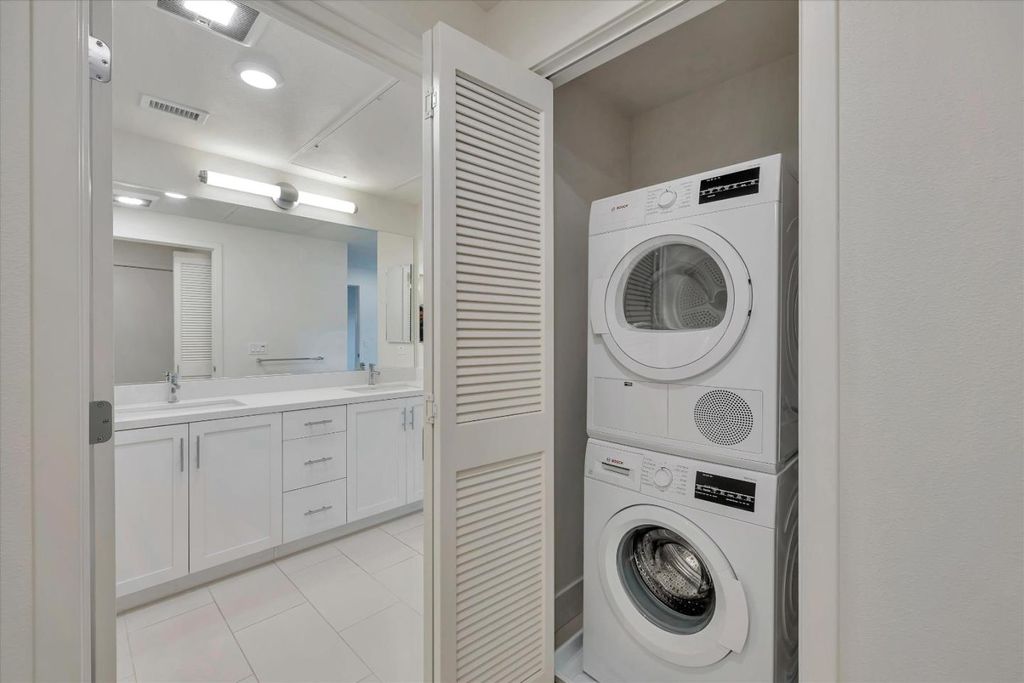 Stunning top-floor corner unit in excellent downtown San Carlos location, minutes to the shops and restaurants along Laurel Avenue. Access the unit through breezy hallways open to the outside. High-end Bosch appliances in the kitchen surrounded by quartz countertops. Combination living and dining area flows out onto an intimate balcony offering views of the western hills. Washer/dryer in unit. Purified water filtration system with reverse osmosis. Spacious closets outfitted with hanging systems for easy organization. Unit includes 1 parking space in secure, underground garage. A/C and Central forced air. No pets. Close to public transportation, major freeways and SFO. Worth a visit!