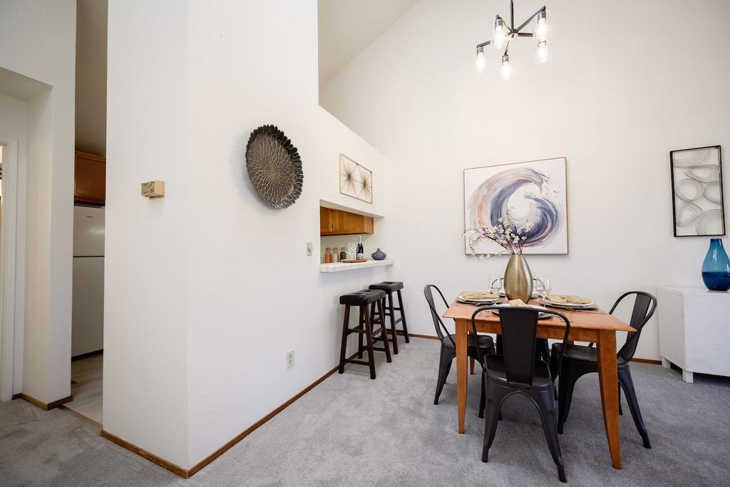 Experience the easy, convenient lifestyle of Hidden Oaks, a community known for its peaceful greenbelts, multiple pools and spas, and unbeatable walkability. You're just steps from markets, restaurants, theaters, the library, the Community Center, Skypark, and everything Scotts Valley has to offer. Step inside to a light-filled living room featuring sky-high vaulted ceilings, a cozy fireplace, and tranquil greenbelt views. The desirable reverse floor plan places both bedrooms on the entry level, with the kitchen, dining area, and living room upstairs. Enjoy al fresco dining on the second-floor balcony overlooking one of the community's spa and greenbelt areas. The spacious primary bedroom includes its own private patio, vanity area, and full en-suite access. Down the hall you will find the guest bedroom and laundry. The home also features fresh interior paint, new flooring, and numerous upgrades throughout. A detached 1-car garage provides ample room for parking and extra storage. Hidden Oaks residents enjoy multiple pools, spas, and beautifully maintained greenbelt spaces. Plus, you'll love the effortless access to grocery stores, the transit center, parks, dining, and more. With Highway 17 just moments away, you're minutes to the beach or an easy commute into Silicon Valley.