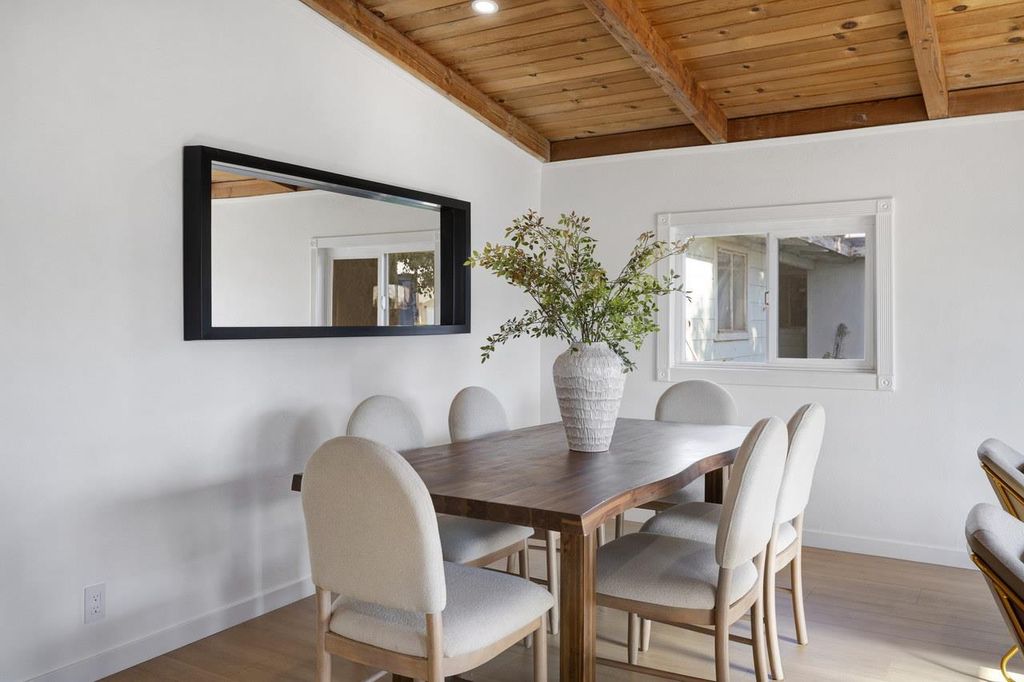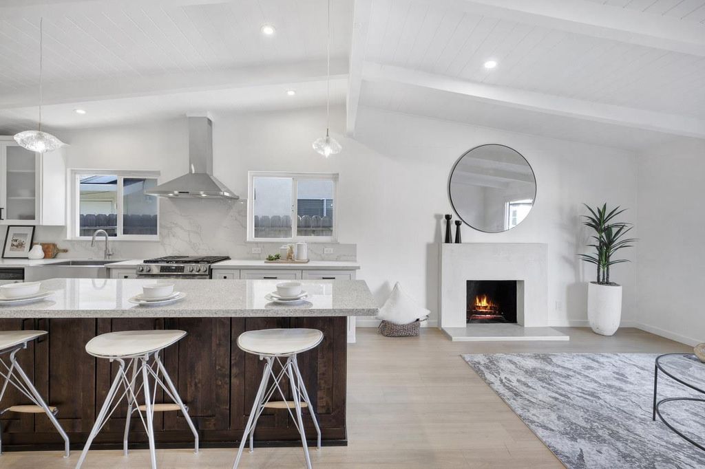 Welcome to your exquisite new home in Fremont! Voted the happiest city in America. Elegantly updated, turn-key and move-in ready! Out front, you'll immediately notice the manicured landscaping, freshly painted exterior and great curb appeal. Then when you enter, you'll appreciate the smell of fresh interior paint, the abundance of light, high ceilings, wide panel LVP flooring, and all of the tasteful upgrades throughout. The living/dining area is expansive with an open beam design. Proceed to the kitchen where you'll find a gorgeous open floor plan. New quartz countertops, refrigerator, and gas range. There's also a dishwasher, microwave, and large sink. The island and living room are perfect for gathering and hosting. Stay cozy with the fireplace, and manage your comfort with remote controlled electric wall mounted heating/cooling units in each room. Convenient 2 car attached garage with a washer/dryer and sink inside. The bedrooms and bathrooms have been updated. And the back yard has been cleaned up. You can place some outdoor furniture on the deck and there's a shed for extra storage. Top Rated Fremont Schools!!! EM Grimmer Elem 8/10, John M Horner Middle 8/10, and Irvington HS 10/10! Come make this home yours!!