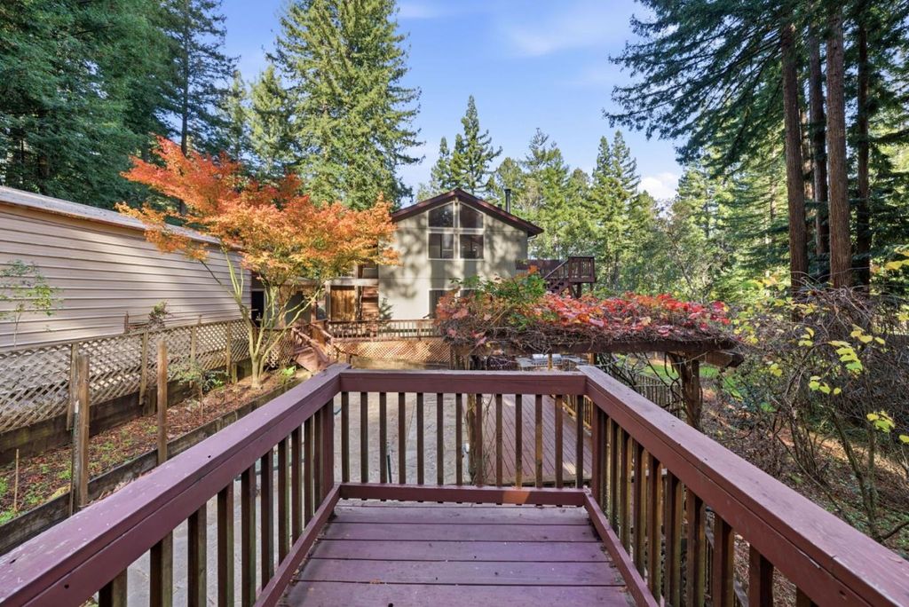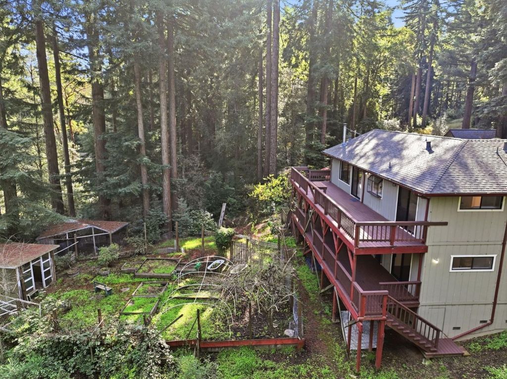 Your 3-acre Santa Cruz mountain retreat is here, generational mountain living at its finest! Natural beauty and privacy await on this huge tranquil lot featuring a 2-level 2688 sq ft single family home that is flexibly set up to accommodate duplex or multi-generational style living with 2 full kitchens, 3 bedrooms and 3 full baths, a bonus room that could be used for bedroom 4, tons of communal living space, four detached garage/shop spaces, a studio, and more. Built in 1988, this gated property literally has it all. Outdoor living at its finest, 2 decks, one on each level, along with a private courtyard, and garden area. Freshly painted interior and new flooring throughout. Located just off Hwy 9 in Brookdale at the top of Western Ave, 2 miles from downtown Boulder Creek, 25 minutes to the beach and 45 minutes to SJC. This property has been digitally staged.
