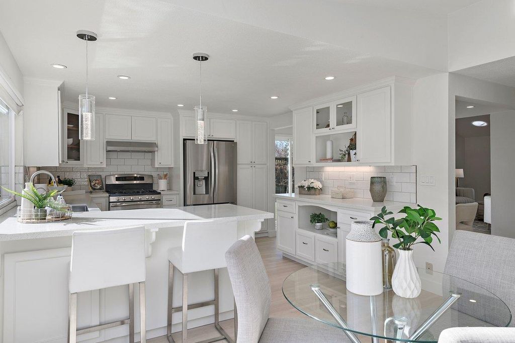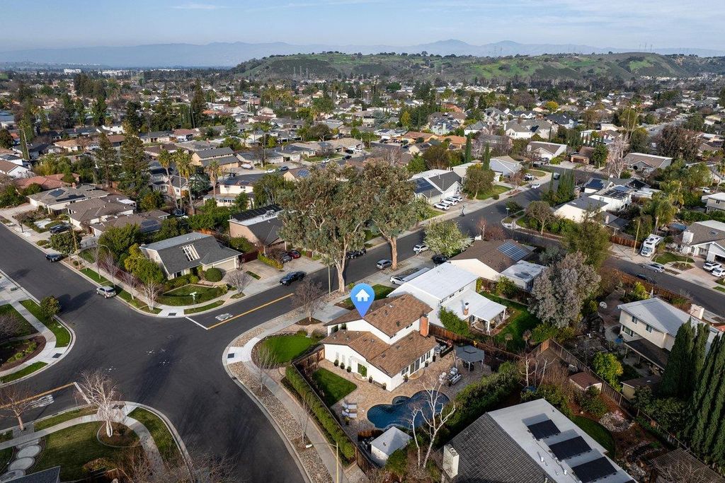 Welcome to this stunning showplace that lives large! Perfect to raise a family, to retire to, or to simply fall in love with! Located on a picturesque corner lot, in the beautiful sought-after ALMADEN VALLEY, with the gorgeous foothills, close to schools, parks and hiking trails! This remodeled gem offers four bedrooms, including a primary bedroom on the ground floor, with private patio, two striking full baths plus convenient guest bath. Breathtaking chandelier enhances formal entry with high ceilings, rich luxury vinyl floors and sunsplashed interiors.The enticing chef's kitchen, overlooks expansive patio, custom/pool+spa, invites indoor/outdoor parties, or inventive gastronomical creations, equipped with quartz counters, gas range, French double drawer refrigerator and an abundance of cabinetry, perfect for culinary enthusiasts. The formal dining room and separate family room provide for entertaining and family gatherings. Primary bedroom boasts spa bath with heated floor, heated towel bar, and even heated mirrror=no fog! Walls of glass open to the marvelous patio+gardens with exquisite custom pool+spa to relax+enjoy awesome sunsets. Outdoor shower has hot water! Abundance of fruit trees, citrus, berries and mini vineyard will bring joy to the heart of a city farmer!