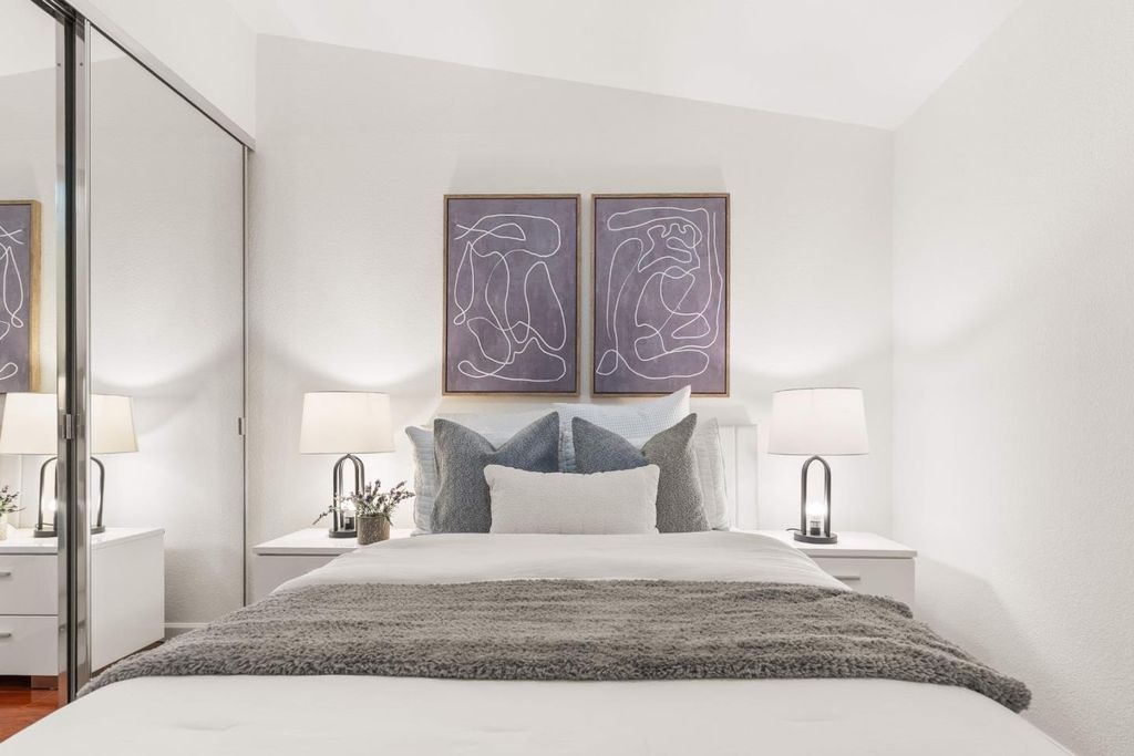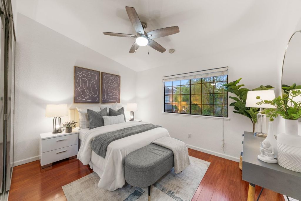 Situated in prime San Jose within the sought-after Cupertino school district, this top-floor 2-bedroom, 2.5-bath condo in Saratoga Place offers comfort and convenience. Located within Lynbrook High boundaries, this home is perfect for families seeking a top-rated school district. The 1,044 SF home features a bright living room with large windows and a private balcony. The updated kitchen includes granite countertops, stainless steel appliances, tile flooring, and a reverse osmosis system. Both bedrooms feature custom closet organizers and ceiling fans. Each room has its own radiant heating system. The bathrooms feature updated granite vanities. Additional amenities include recessed lighting, ample storage, a detached 1-car garage, in-unit laundry, and a community pool, spa, and well-maintained common areas. With no rear neighbors, enjoy privacy and serene views. Conveniently within walking distance to HMart, Cash and Carry, preschools, children's enrichment programs, and other shops, this condo provides unmatched convenience. It's also a short drive to major tech companies like Apple, Nvidia, Meta, and Google, with easy access to Hwy 85, 280, and 101. This home offers both a prime location and comfortable lifestyle in the heart of Silicon Valley.