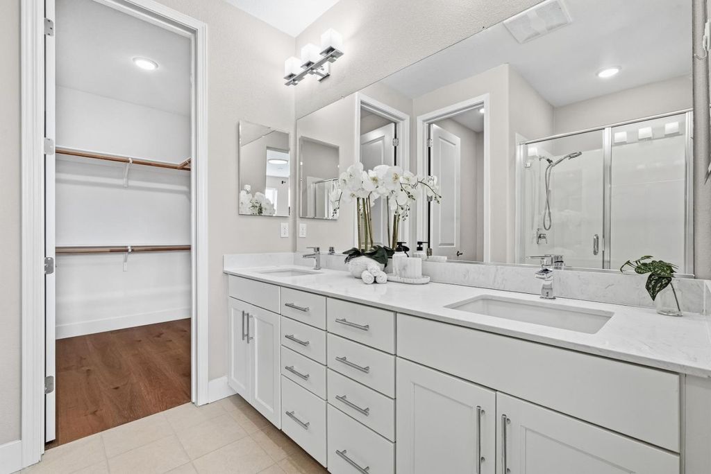 Welcome to this charming 2018-built home featuring two suites in the sought-after The Vale community of Sunnyvale. The entry level offers a welcoming foyer with a closet and direct access to the attached garage. The second level showcases a bright, open floor plan filled with natural light. The living room includes a sliding door to a private balcony and flows seamlessly into the dining area. The gourmet kitchen features a center island with breakfast bar, beautiful countertops and backsplash, modern appliances, and ample white cabinetry. A nearby half bathroom adds convenience. On the third level, the primary suite is located at the front of the home and offers a spacious bedroom with large windows. The en-suite bathroom includes a double vanity sink, large mirror, stall shower, and walk-in closet. A second suite sits across the hallway and features a bathroom with a shower over tub. Enjoy a prime location close to restaurants and grocery stores including Costco, Whole Foods, and Target. Near major tech companies such as Google, Microsoft, Apple, and Amazon, with easy access to Highway 101, Central Expressway, and Lawrence Expressway. Do not miss this great opportunity!