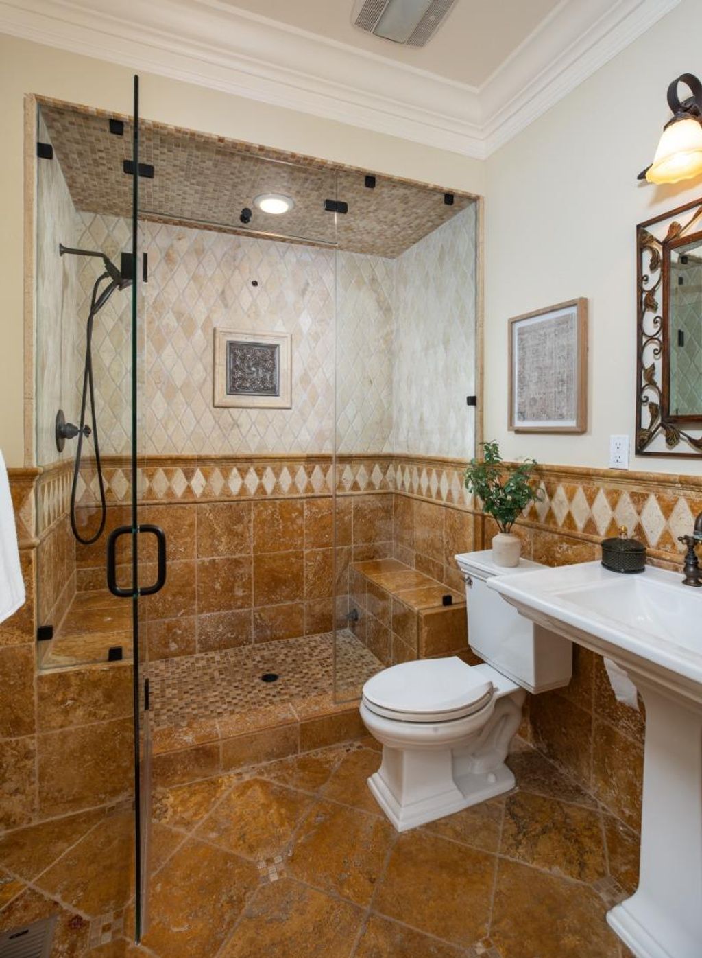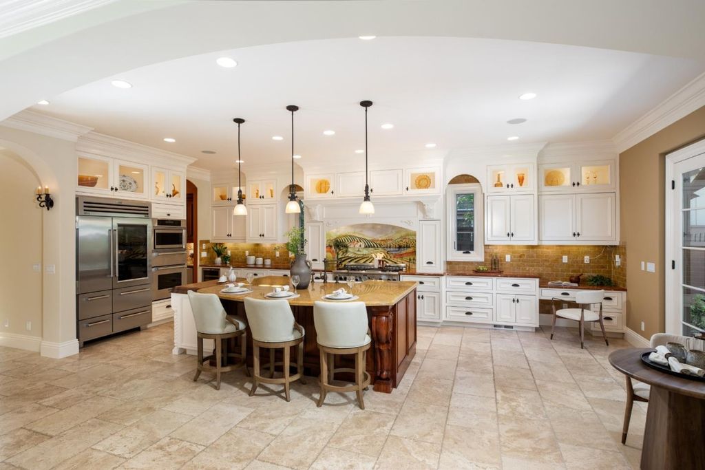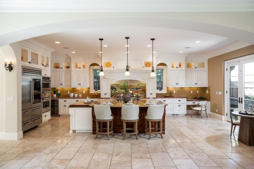 This custom-built Mediterranean estate is a rare expression of craftsmanship and elegance, set on a quiet Willow Glen tree-lined street. Thoughtfully designed floor plan offers both grand entertaining and elevated living. High ceilings, exquisite crown molding, and striking wrought-iron detailing establish a commanding architectural presence. Formal living, dining, and family rooms flow beautifully, anchored by a courtyard that fills the home with light and creates a seamless indoor-outdoor connection. Five fireplaces throughout add warmth and character. The chef's kitchen is generously scaled and impeccably appointed with top-of-the-line appliances. The butler's pantry and wine room by the formal dining room elevate hosting to an art form. Two bedrooms on the main level, full bath with steam shower, and a powder room are ideal for guests or multi-generational living. Upstairs, the expansive primary suite serves as a private retreat with a beautifully appointed bathroom. Two large bedrooms, full bath, plus an elegant laundry room complete the upper level. Additional features include two sound systems, two laundry rooms, and two HVAC systems. Located moments from Willow Glen's vibrant downtown, this residence impeccable in execution, elegant in detail, and timeless in presence.