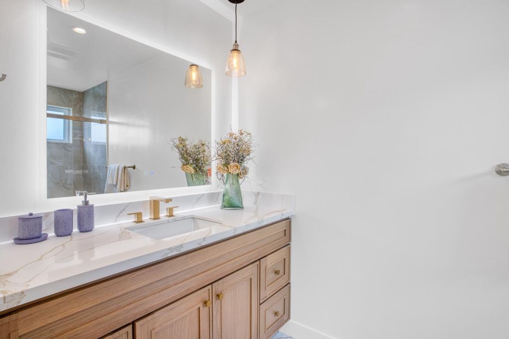 Located on one of the most charming streets in Willow Glen, this newly completed 2026 home offers 5 bedrooms, 5 bathrooms, and sits on a spacious 6,148 sq ft lot. The home features a dramatic 20-foot ceiling at the entry, dual-pane windows, and an open-concept floor plan designed for modern living. The chefs kitchen includes a large island with bar seating, breakfast nook, European-style custom cabinetry, and high-end stainless steel appliances. The ground floor offers a bedroom suite, an additional multi-use room, and a full guest bathroom. The spacious living room features a pre-wired stereo system, dual-zone HVAC, and large sliding doors that open to the backyard. Upstairs includes two guest bedroom suites, a large laundry room, and an oversized primary suite with a south-facing balcony. The luxurious primary bath features a freestanding soaking tub, oversized shower, and dual vanities. Conveniently located just minutes from downtown Willow Glen, restaurants, coffee shops, schools, and parks, this is a rare opportunity to own a brand-new home in one of the areas most desirable neighborhoods.