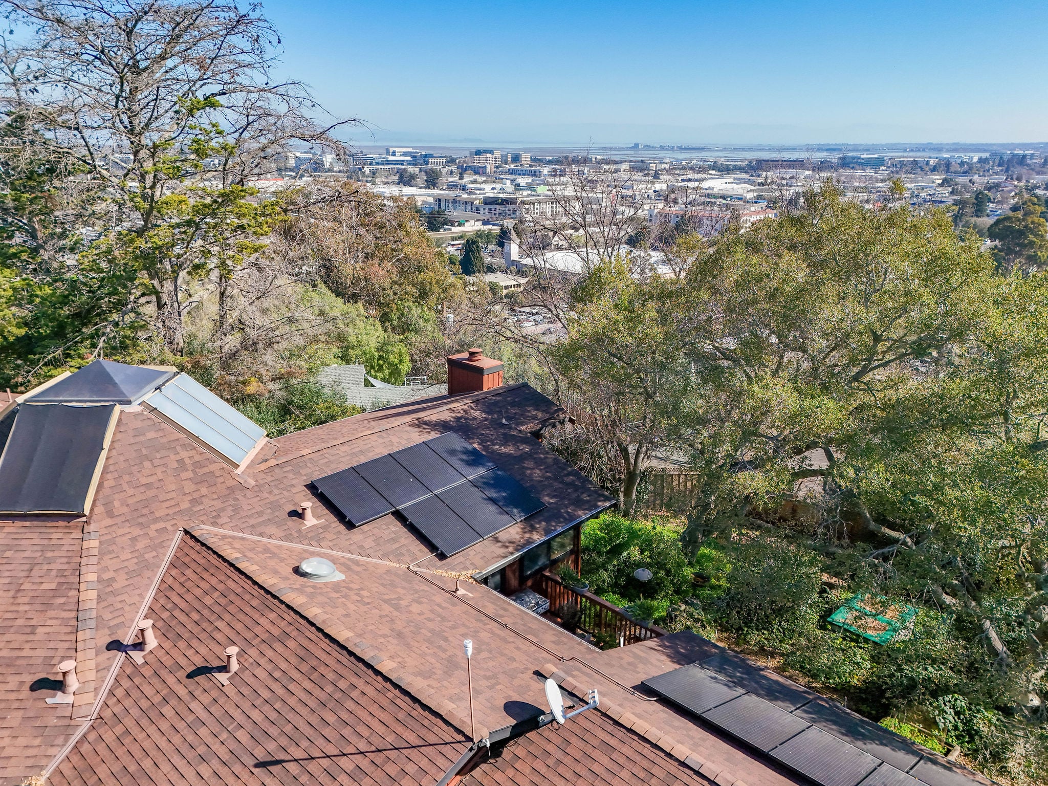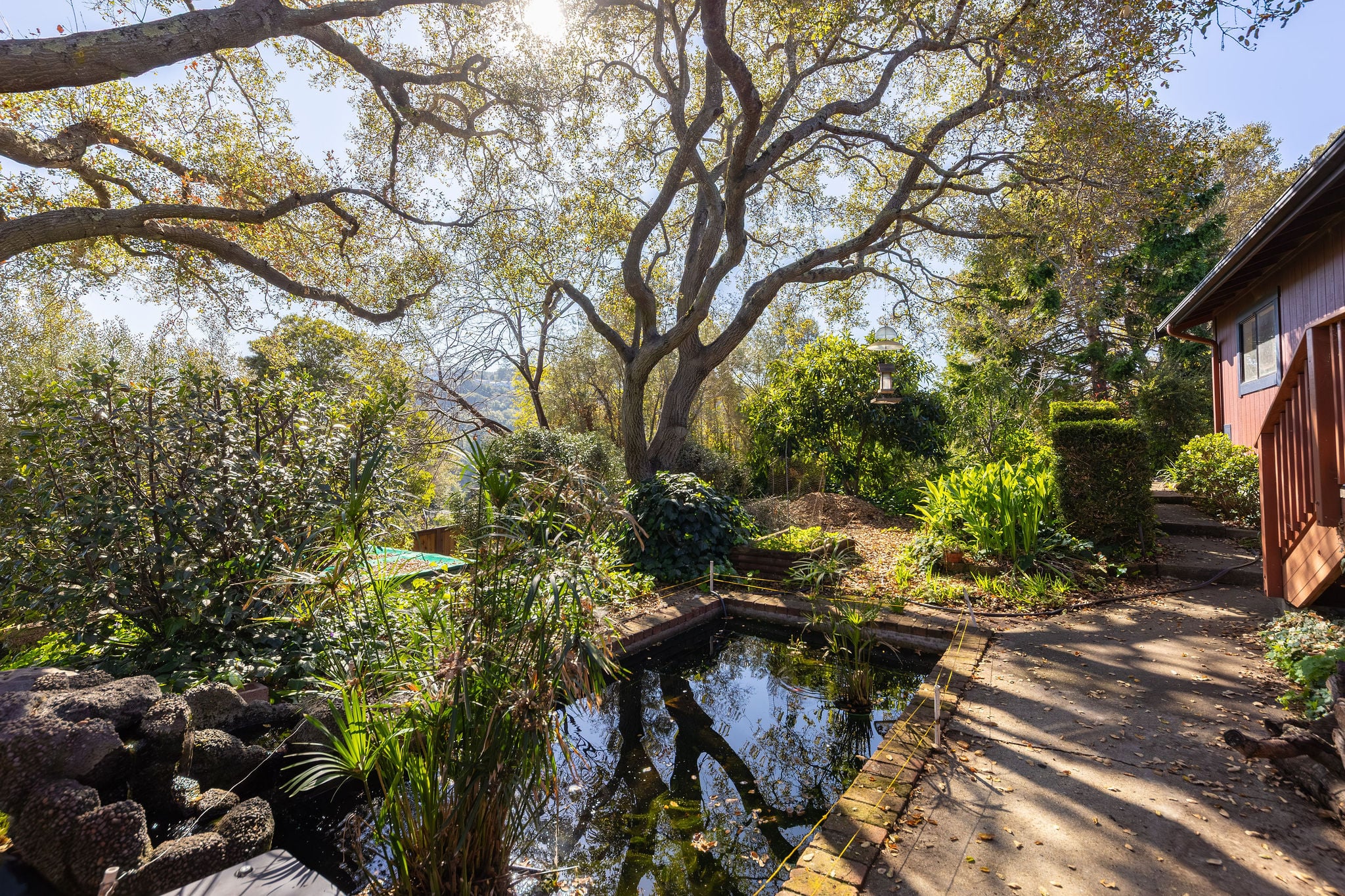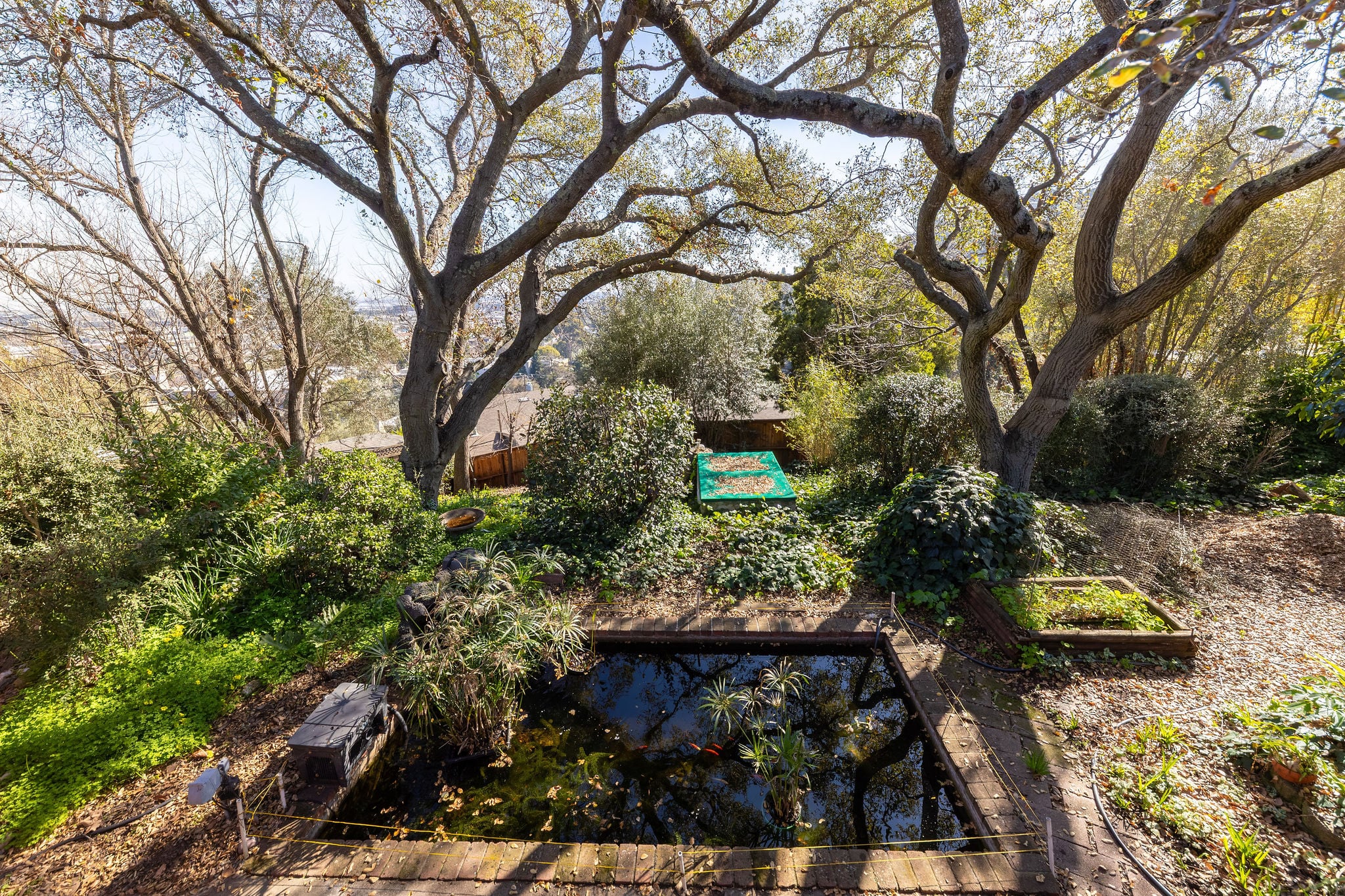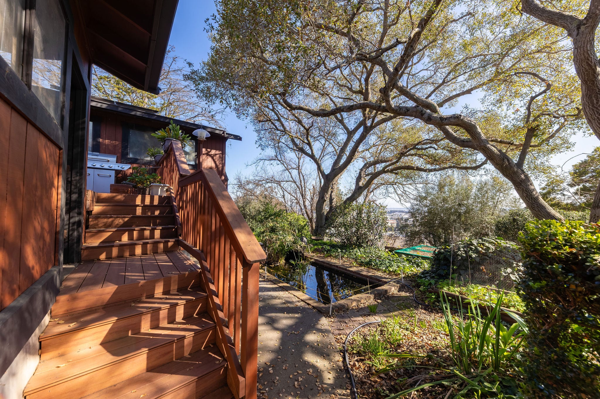 Tucked away on an expansive 0.705-acre lot in the prestigious Belmont Country Club neighborhood, this private retreat offers sweeping Bay views and exceptional tranquility. A long, driveway leads to a generous motor court, surrounded by mature landscaping and fruit trees that create a serene, secluded setting.