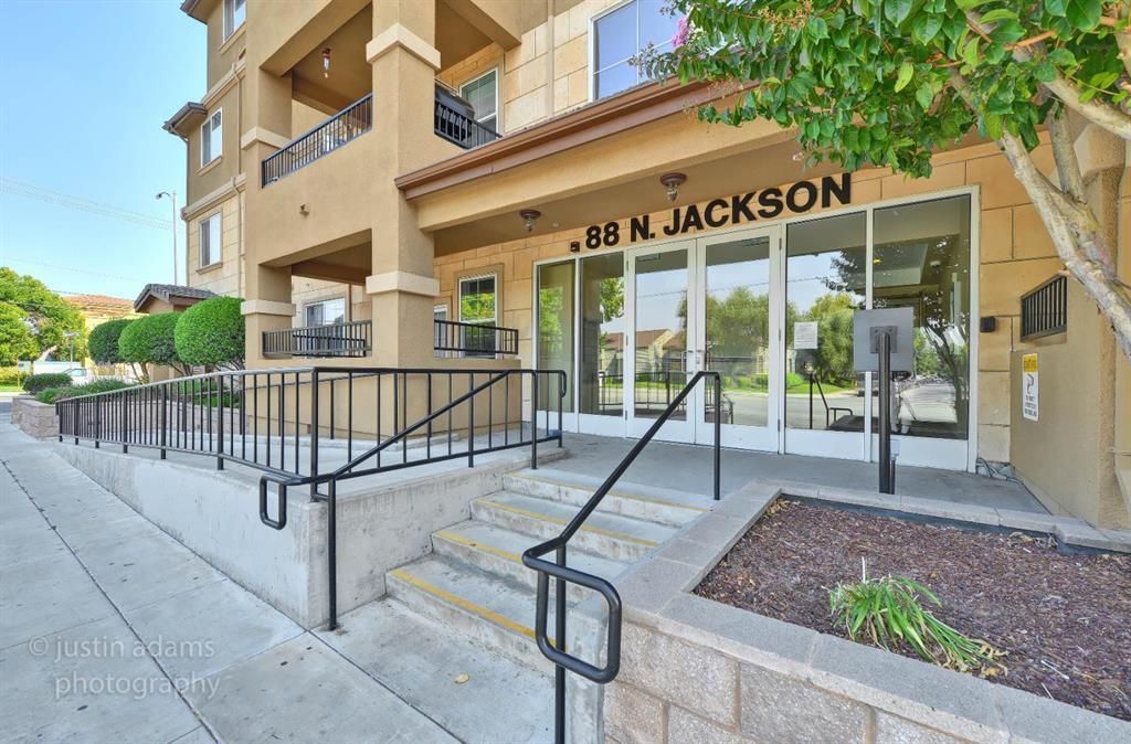 NEW appliances, a professional quality paint job including all doors and trim work. This unit has impeccable parking. RIGHT NEXT to the elevator. Central heat and A/C Washer and Dryer in unit. Great property with no rental restrictions. The spacious bathroom features granite counters, shower over tub with granite enclosure. You are going to love the community that offers a pool and spa, clubhouse, lush courtyard/picnic areas, assigned and gated garage parking, water, and garbage. Excellent commute location close to VTA, Bart, The 680, the 101, and the 280! Additional amenities include indoor laundry, central A/C, community pool and spa, gated private parking garage, picnic area, community room and a park next door. Excellent commute location close to everywhere you need to be in the Bay