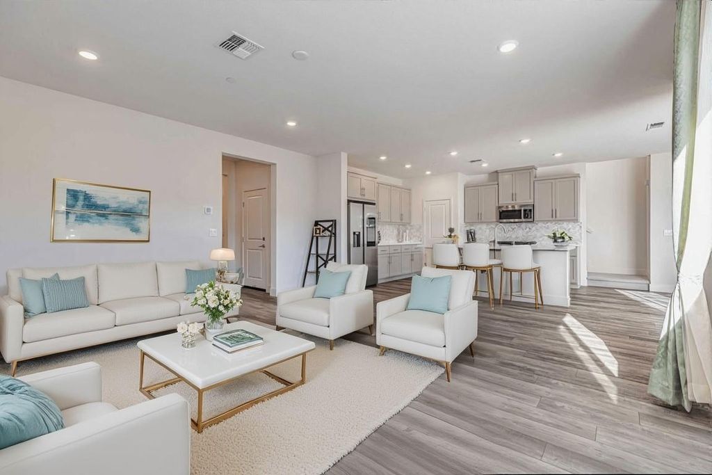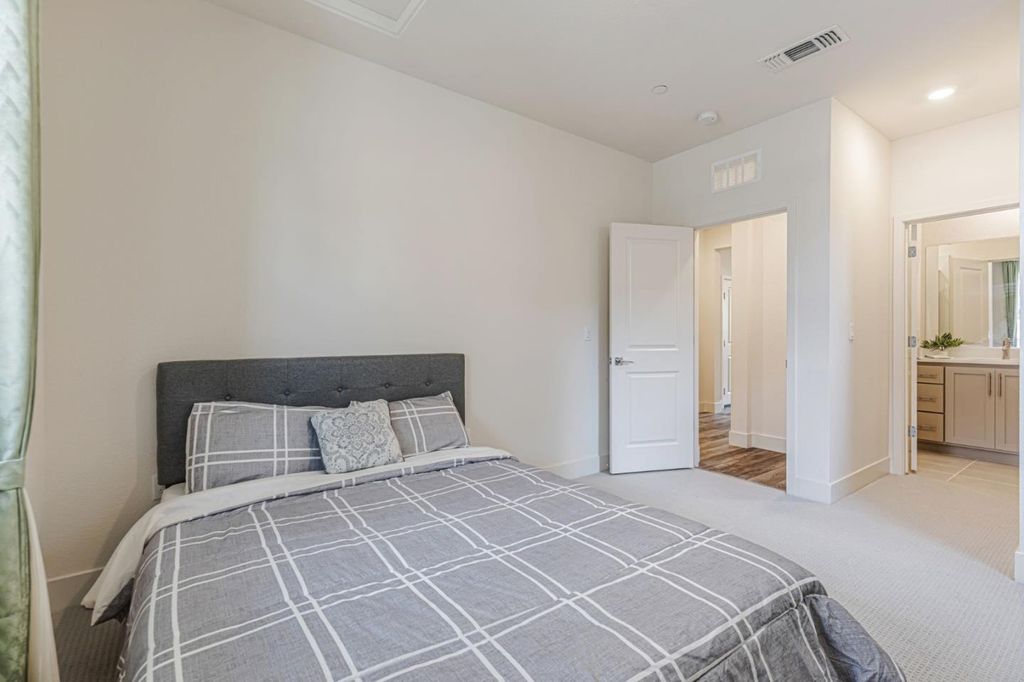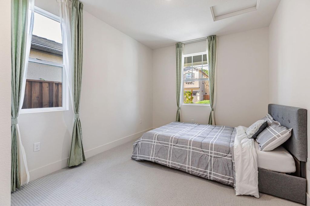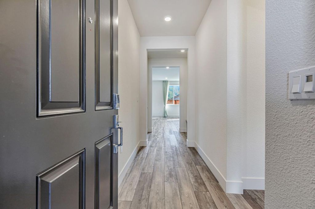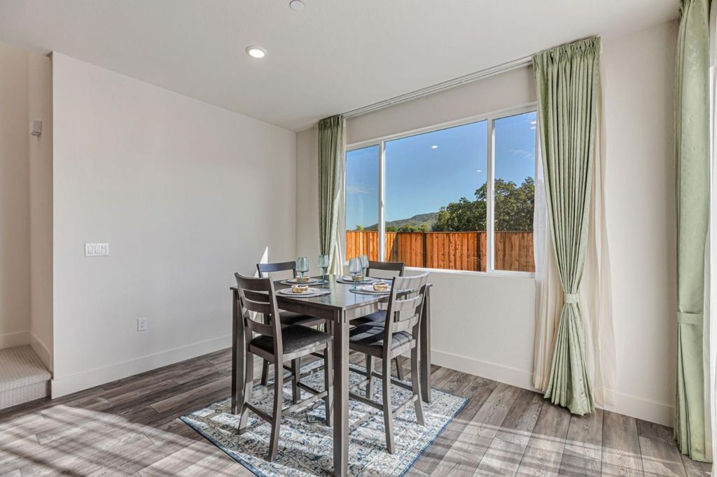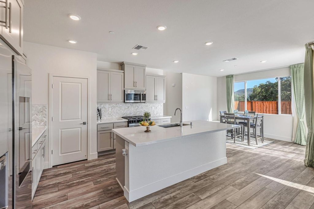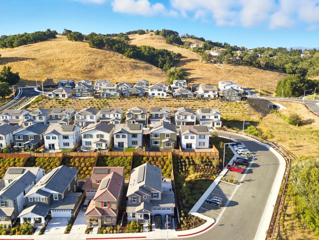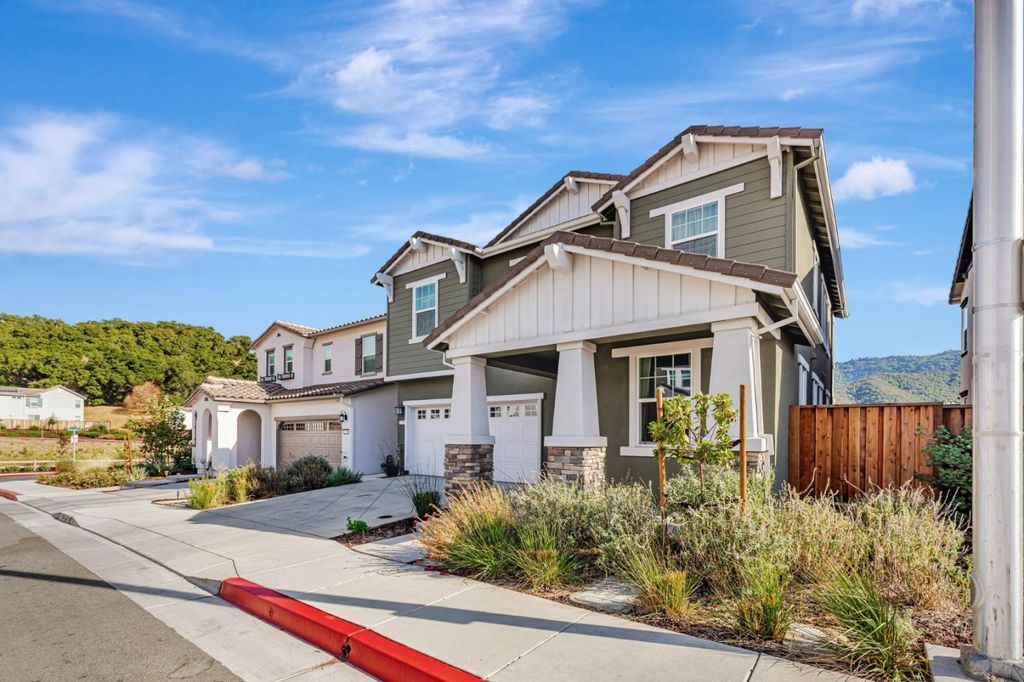 Beautiful, nearly new 5-bedroom, 3.5 bath home nestled in the foothills of Gilroy! Built just one year ago, this spacious residence located in Cadence Community offers modern living in a prime location. Enjoy being down the street from Gilroy Colf Course,1.2 miles from Gilroy Gardens, 1.5 miles from vibrant Downtown Gilroy, 0.5 miles from the scenic Uvas Creek Preserve, 0.4 miles from Christmas Hill Park, and within 3.5 miles of some of Gilroys most notable wineries. The thoughtfully designed floor plan includes a stunning upgraded kitchen with quartz counters, an en-suite bedroom on the main level perfect for guests, plus a separate half bath just off the great room. Upstairs you'll find three additional guest bedrooms, a large laundry room, and an enormous primary suite showcasing breathtaking foothill views. The luxurious primary retreat features a soaking tub, dual vanities, and an expansive walk-in closet. The large backyard is a blank canvas, ready for you to create your dream outdoor space. Enjoy the added benefit of solar energy, epoxy floor in the garage, and EV charging capabilites. Dont miss the opportunity to own an beautifully upgraded, modern home in a highly sought after location with access to Gilroys best amenities right at your doorstep!
