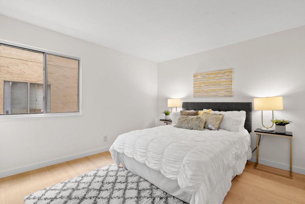 Price Reduced $30,000 - this stylish updated ground-floor condo in the gated Mission Grove community blends comfort, convenience and modern design. The 2-bedroom, 1-bath layout features a spacious living area that opens to a private patio perfect for relaxing or entertaining. The kitchen shines with quartz counters, sleek stainless appliances, soft-close cabinetry and contemporary fixtures AND the remodeled bathroom offers a new shower surround and refinished tub. New flooring, fresh paint and central heating/AC make this home move-in ready. Residents enjoy access to resort-style amenities including a pool, spa, sauna, gym, recreation room and laundry facilities. Ideally located near major tech campuses, shopping, dining and key commuter routes (280, 680, 101), plus easy access to VTA Light Rail, Japantown, SJSU and the airport. A great opportunity for first-time buyers or investors seeking a turnkey home in the heart of San Jose!