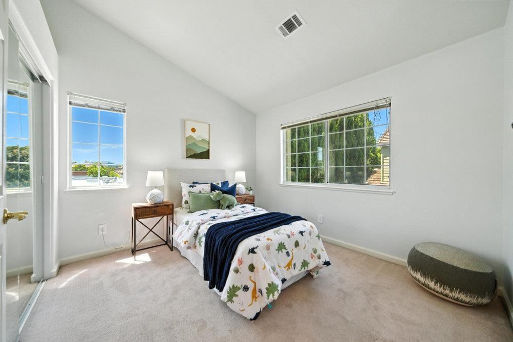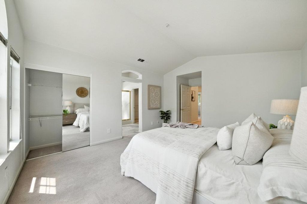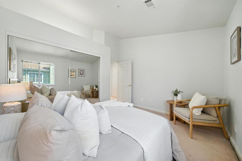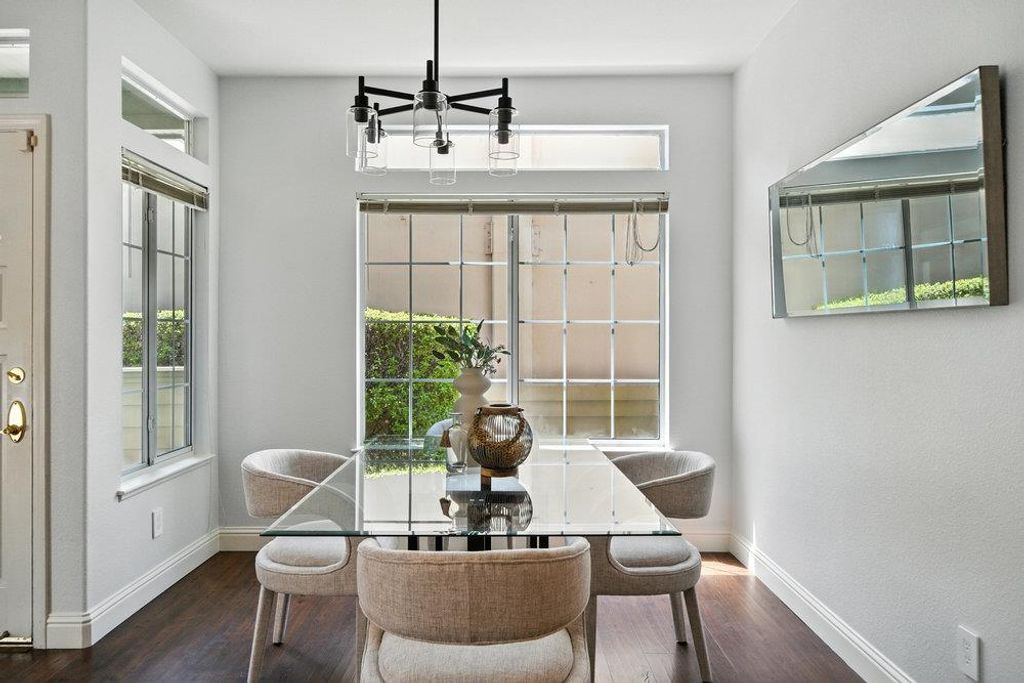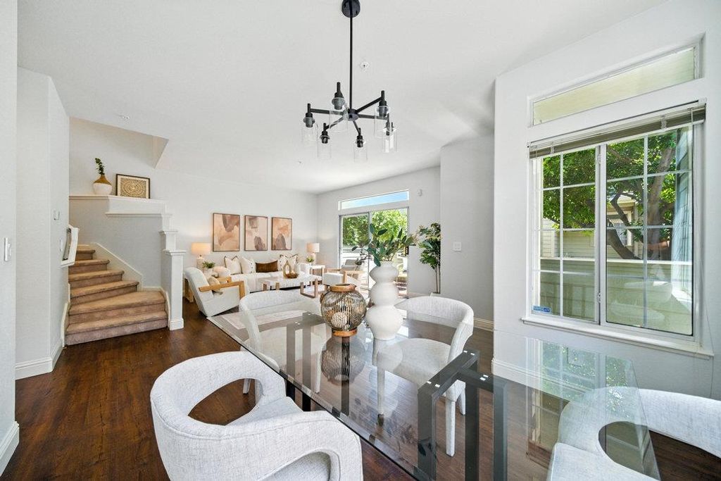 One of the most serene neighborhoods in Sunnyvale, the Traditions community is surrounded by soaring trees & loads of greenery! This spacious End Unit Townhome truly feels like a Single Family home, rare to find this much space in a townhome! Largest floor-plan in all of Tasman Crossings! Tons of natural light shine through large end unit windows, skylight & sliding doors! Refreshed townhome w/new carpets, new warm paint throughout, upgraded Kitchen and more! Living Rm / Dining Rm combo w/access to 1st private balcony, Family Rm off Kitchen w/gas fireplace. Gourmet Eat-In Kitchen w/white cabinets, quartz counters, large pantry, breakfast bar and nook w/access to 2nd private balcony! Oversized Owners suite w/WIC, dual sinks, separate tub & shower. Spacious 2nd & 3rd beds w/large closets. Extra Bonus Rm located downstairs, great for home office or entertainment area. Attached 2 Car garage! Central A/C & Heat. HOA includes: Community Pool & Spa, Water, Garbage, Earthquake Insurance & more! Short walk to SevenSeas Park, VTA, Grocery & coffee! Short drive to newly built Downtown Sunnyvale w/loads of dining, shopping & entertainment! Near 101, 237, 85! Minutes from major corporations such as Apple, Google, Nvidia, Meta, Microsoft & Amazon. Don't miss out, loads of nearby development!