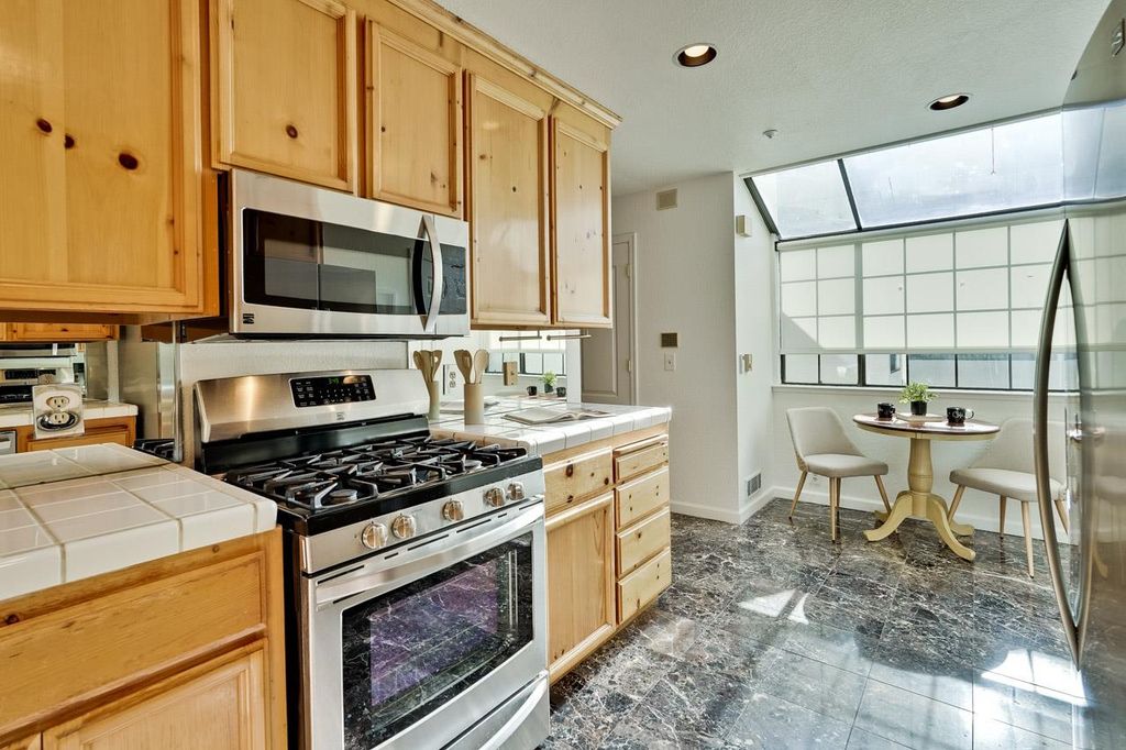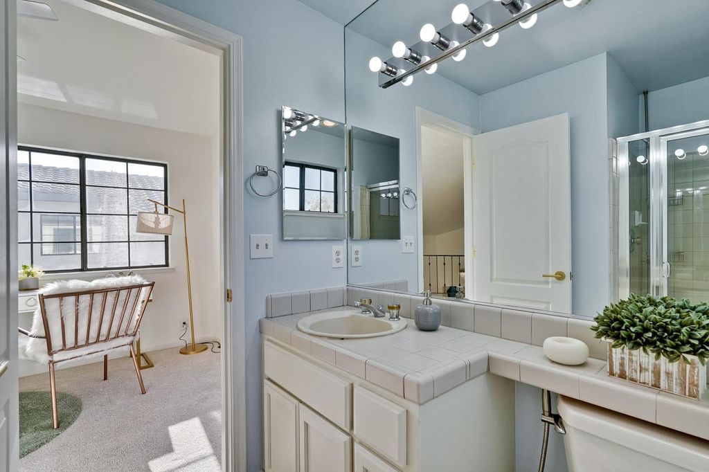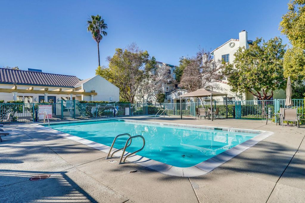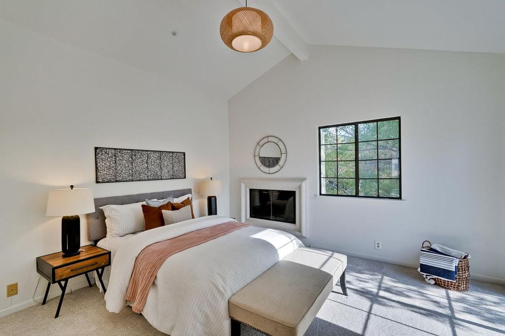 Exceptional End-unit townhome-style condo, nestled in Andalusia Gated community in the Central Fremont. Spanning 1,578 Sq.Ft two-story floorplan, 2 Beds, 3 Full Baths & a bright loft perfect for home office, or creative studio. * Dramatic living room w/soaring vaulted ceiling, a warm fireplace; * Chef's kitchen complete w/SS appliances, Gas range, Refrigerator, plenty of storage cabinets, pantry. Sunny dining area framed by large garden window w/custom remote-controlled solar shades; * Primary Suite is boasting its own vaulted ceiling, fireplace, spacious walk-in closet; * Comfort zoned Heating throughout the house and individual combo A/C & Heating units in each bedroom; * Laundry conveniently located on the top floor (washer & dryer are provided); * Ample storage space located off the veranda-style upper, also niches within the private secondary stairwell and providing easy access between upper balcony, kitchen to attached garage. * 3 private Balconies; * Attached garage plus a dedicated 2nd parking space; The resort-style HOA amenities include pool, spa, clubhouse, plus covers Water, Water Heating, Roof, Trash, Hazard Insurance and Gated security. Prime Location: nearby Lake Elizabeth, Central Park, Fremont Library, Fremont Hub. Easy access to BART & Fwys 880, 680, 84.