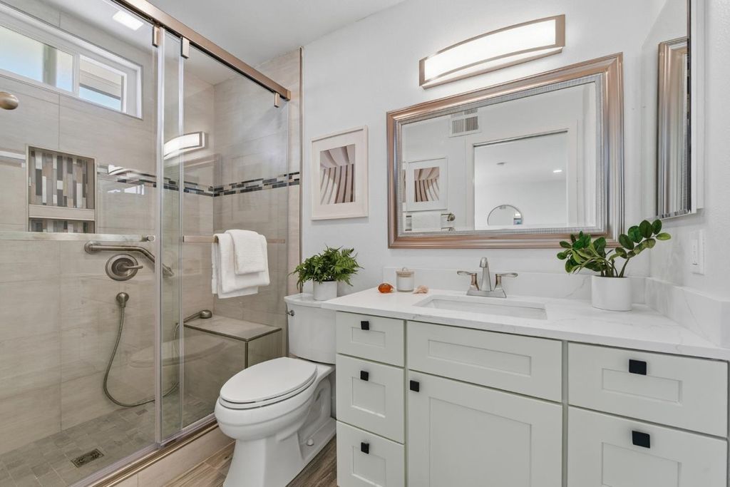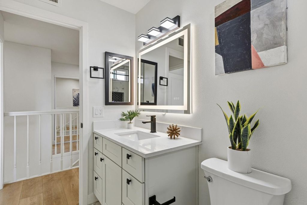 Fall in love the minute you walk inside this Blossom Valley Beauty! It features one of the best floor plans with a bright open-concept layout, that fills the home with natural light. The spacious living and dining areas flow seamlessly into the updated kitchen and family room, perfect for entertaining. It also offers a convenient downstairs bedroom ideal for guests, in-laws, or a home office. Enjoy new vinyl plank flooring, double-pane windows, fresh interior and exterior paint, and stylish finishes throughout. The chefs kitchen showcases white shaker cabinets, quartz counters with soft gray veining, and sleek black fixtures and lighting. From the kitchen and family room, take in views of the expansive 7,916 sq ft ideal for a backyard oasis or future ADU. Upstairs bedrooms are spacious, some with walk-in closets and beautiful neighborhood views. Bathrooms have been updated with modern touches. Also, includes a large laundry room, three-car garage, new landscaping, tankless water heater, and fire-resistant upgrades including (Sidco) panels and amber vents. Near Martial Cottle Park, VCHS Private, shopping, schools, and HWY 101/85/87. Perfect for move-up buyers seeking space, style, and a large lot with rooms to grow, move right in and experience Blossom Valley living at its best!