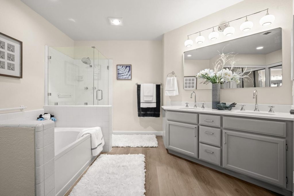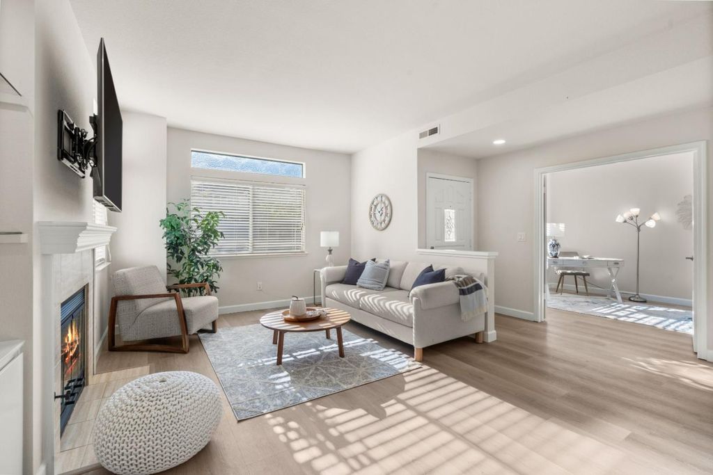 New Amazing Price for this ABSOLUTELY BEAUTIFUL, single level home w/ no stairs in highly desired Village Glen Arden Located in The Villages Golf and Country Club, 55+ Adult community. The Villages is one of the only guard gated communities with 24/7 security in the Bay Area. This home is a single level end unit with a long driveway and large garage. The interior has been fabulously remodeled throughout. This home has a kitchen with granite counter tops, updated appliances, New recessed lighting, dining room lighting and more. New glass shower enclosure, faucets, mirrors and lighting make the bathroom shine. New baseboard and brand new Luxury Vinyl flooring are consistent throughout the house. Wonderful built in cabinets and shelving compliment the marble faced fireplace in the living room. 9' ceiling throughout makes the home feel roomy. An Indoor laundry leads to the nice size garage with ample cabinets for extra storage. The living room and family room give access to a large patio nestled among beautiful trees. Live the resort lifestyle at the Villages. Enjoy the Golf course, putting, chipping and driving range, 4 pools and Spas, Fitness center, Pickle ball, tennis and bocce courts, library, gardens and endless activities with 60 + clubs to join. Age restrictions apply.