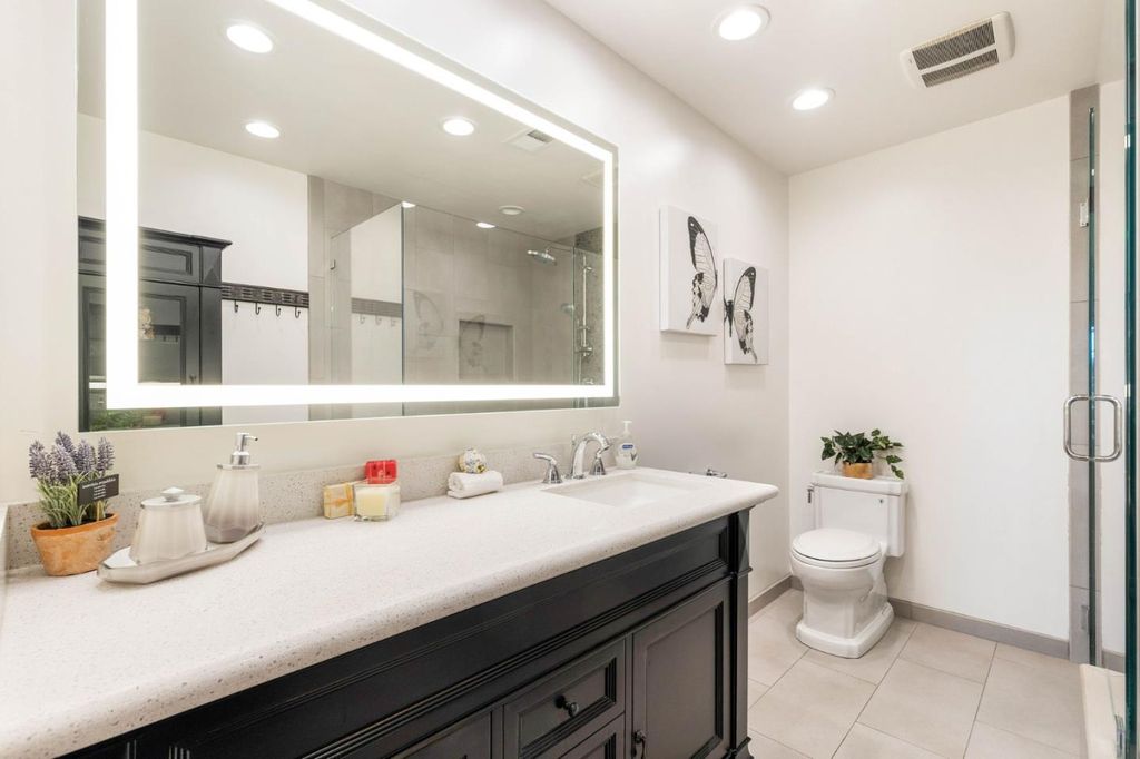 Elegant Los Gatos townhome offering luxury living just moments from downtown! This beautifully refined 3-bedroom, 2.5-bath residence features a spacious split-level living and dining area with gleaming refinished floors, fresh designer paint, and a cozy gas-starter fireplace perfect for entertaining. The gourmet kitchen showcases granite countertops, quality cabinetry, and ample workspace. Upstairs, natural light pours through skylights, complementing the serene ambiance. The luxurious primary suite is a true retreat with sweeping mountain views, a generous walk-in closet, and a spa-inspired bathroom with a large stall shower and light-up vanity mirror. Enjoy the convenience of upstairs laundry and unwind in the private backyard oasis complete with a tranquil waterfall feature. Nestled in a peaceful community behind downtown Los Gatos with two pools above and below this unit. This exquisite home combines modern comfort, elegant design, and an unbeatable location near fine dining, boutiques, and scenic trails.