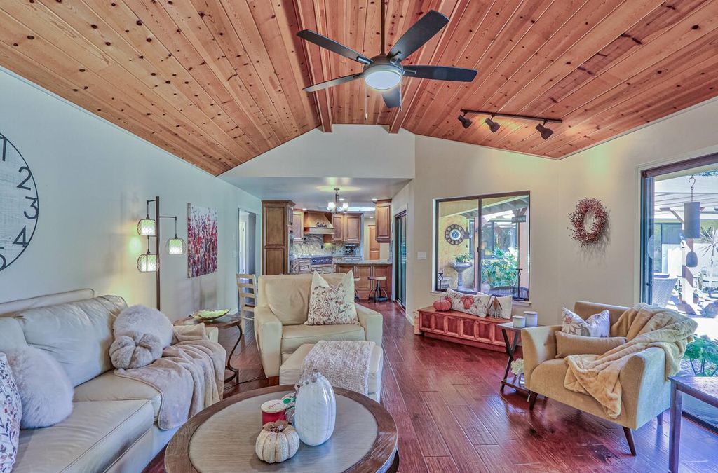Tucked behind the gates, in the much sought after enclave of Country Meadows Estates, sits this spacious and inviting home. Situated on a meticulously landscaped premium lot the house is currently undergoing installation of a brand-new, $100,000 Class A fire rated concrete tile roof. Lovingly maintained the home boasts an updated, remodeled kitchen, two remodeled bathrooms & a well thought out floor plan that offers quiet retreats & entertaining spaces throughout. The kitchen features Wolf appliances, a hammered copper sink, wine fridge, pantry cupboard & a skylight. The cozy family room has vaulted ceilings & a new stacked stone fireplace with a contemporary gas insert. Entertaining is a breeze with the elegant formal dining room & step-down living room that features a striking marble fireplace with traditional mantel. The primary bedroom features 2 closets, including a large walk-in, a spacious bathroom & sliding glass doors to the back patio. For outdoor gatherings, head to the back patio & lush lawn area, surrounded by mature flowering shrubs & raised veggie beds. Venture further and you will discover a hidden area with plenty of room for play structures, a garden shed or dog run. The 3-car garage has additional storage & there is ample guest parking. This is a Must-See Home!