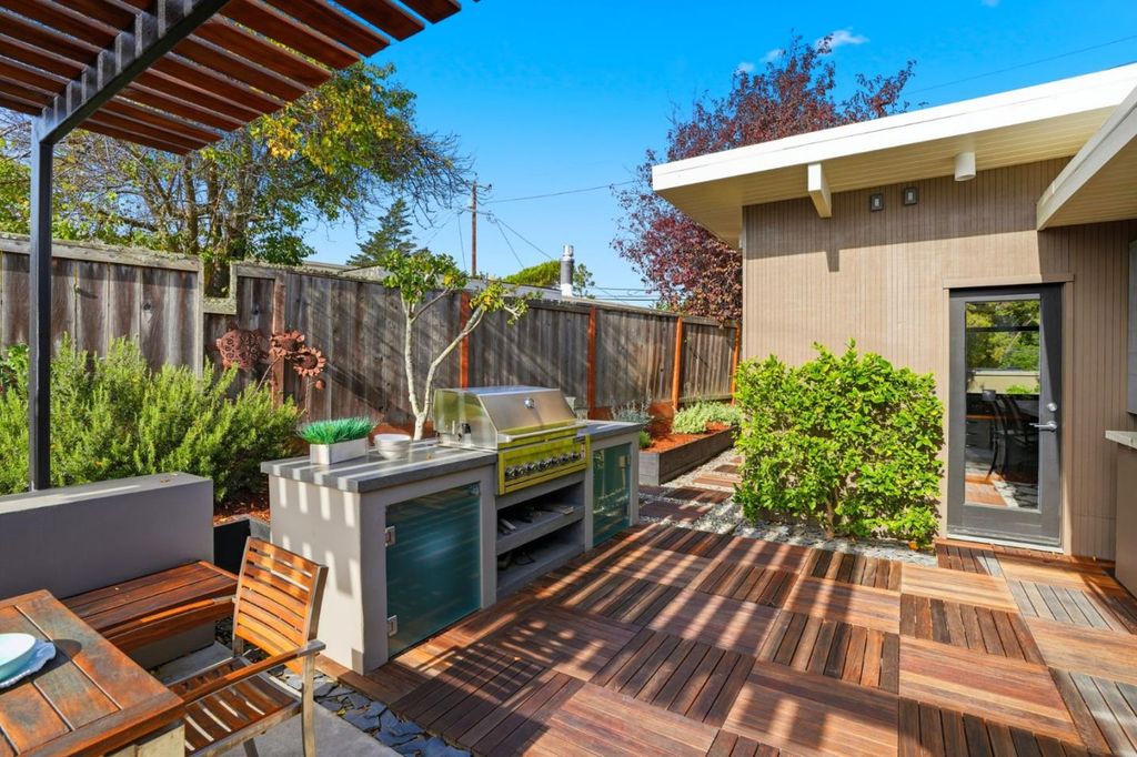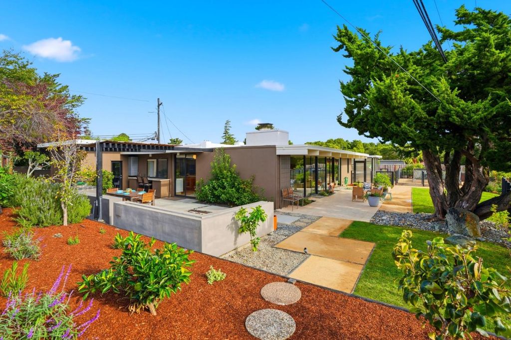 Set on a generous, level 9,866 sq. ft. lot with no rear neighbors, this 3-bedroom, 2-bath Eichler plus large office/family room (possible 4th bedroom) offers the perfect blend of mid-century design and modern indoor-outdoor living. A former Eichler Home Tour showcase, the home embraces open-concept living with walls of glass, natural light, and a seamless connection to the outdoors. The spacious addition provides flexibility for a family room, office, or creative studioideal for todays lifestyle. Outside, the expansive yard is a private retreat featuring an outdoor kitchen and dining area, an abundant vegetable garden, and a greenhouse for year-round growing. With its oversized lot, and proximity to the Highlands Rec Center (pool, tennis, fitness), Highlands Elementary, and Crystal Springs Shopping Center, this home captures the best of California livingspace, sunshine, and a true connection to nature.