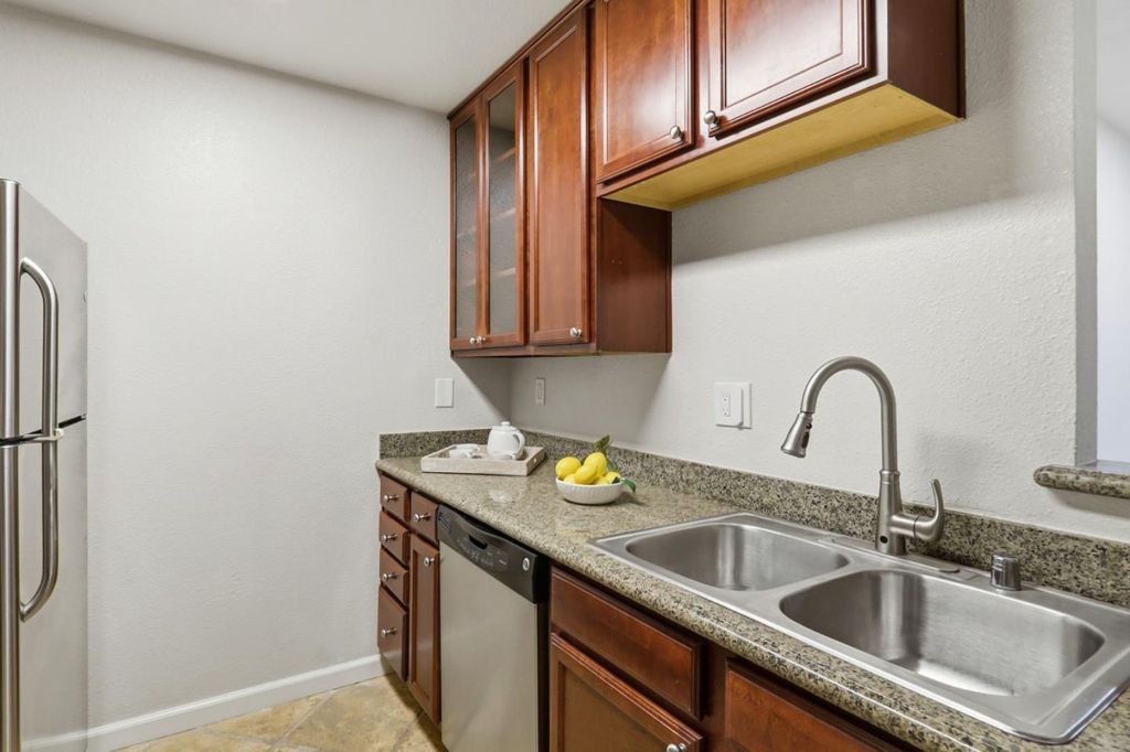 Experience the best of Silicon Valley living at Sierra Crest. This 2-bedroom, 2-bath condo offers 922 sq ft in one of the best buildings in the complex. The kitchen features granite countertops, a double bowl sink, stainless steel appliances, & travertine floors, opening effortlessly to a dining area with matching tile & a bright living room illuminated by recessed lighting. Step through the sliding glass door to your private balcony with a convenient storage room. The spacious primary suite includes a walk-in closet with organizers & an ensuite bath finished with a granite countertop, travertine floor, & shower over tub. The second bedroom also offers recessed lighting & a walk-in closet with organizers, while the hall bath includes an in-unit washer & dryer for everyday convenience, along with a granite countertop & travertine tile flooring. Additional features include smart light switches throughout & one designated carport space for added convenience. Sierra Crest residents enjoy resort-style amenities including pools, a fitness center, & a clubhouse, all set within beautifully maintained grounds. From here, you can walk to Santana Row's shopping & dining, explore Westfield Valley Fair, or quickly reach major employers via 280, 880, & San Tomas Expressway.