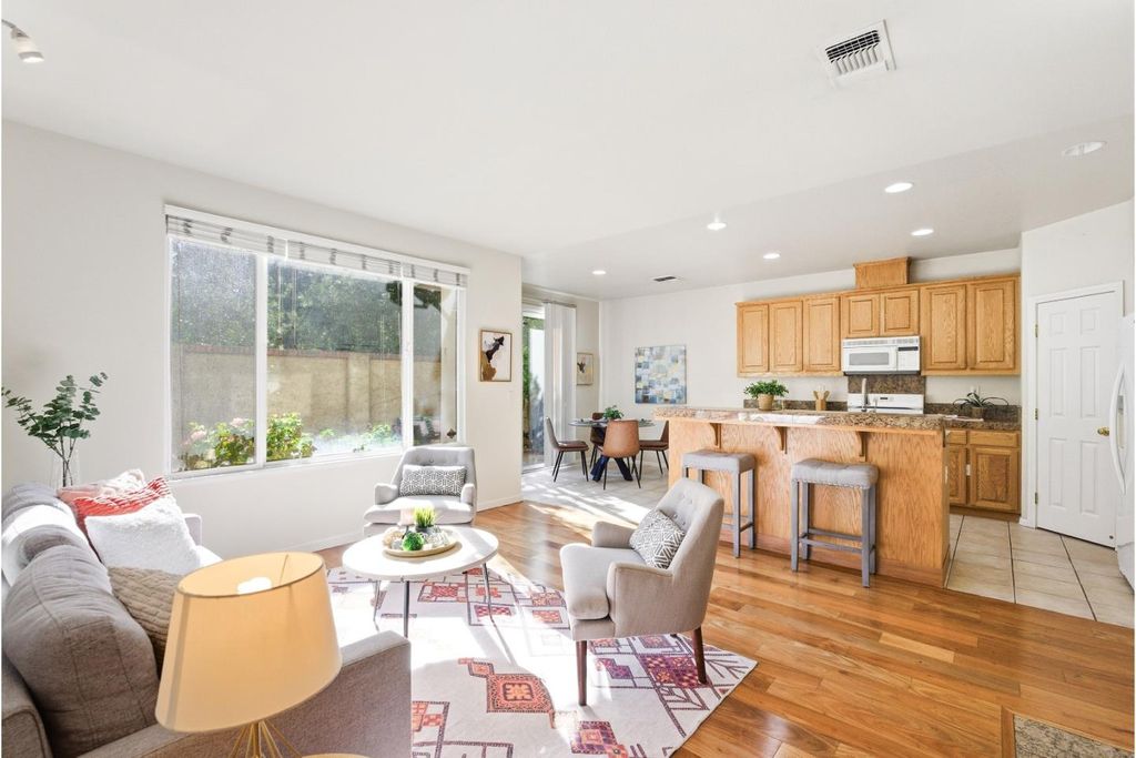 Spacious 5 Bedroom Home Located In A Tranquil Community This delightful home is ideal for a family wanting a lot of living space, in a single family house with its own yard but not too much yard work. Located in a low traffic neighborhood having only one street in and out, it is within walking distance of numerous shops, cafes, and other attractions. The modern kitchen, with a large pantry, is separated from the family room by an island and has a breakfast area at one end. A sliding glass door leads from the breakfast area to the back patio. The adjacent family room is light filled from a large window. The kitchen, breakfast area, and family area form an inviting great room. The living room and formal dining area are located at the front of the house and separated from the private areas by the staircase. One bedroom is off of a short hall and adjacent to the family room. It would be an ideal guest room. The other four bedrooms are upstairs as is the laundry room and two bathrooms. The primary bedroom, with bath en-suite, has a walk-in closet, dual sinks, a tub, and a shower.