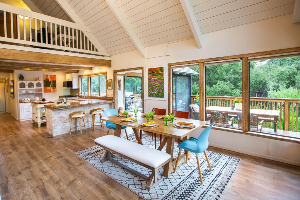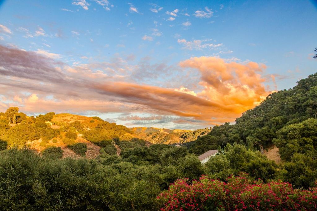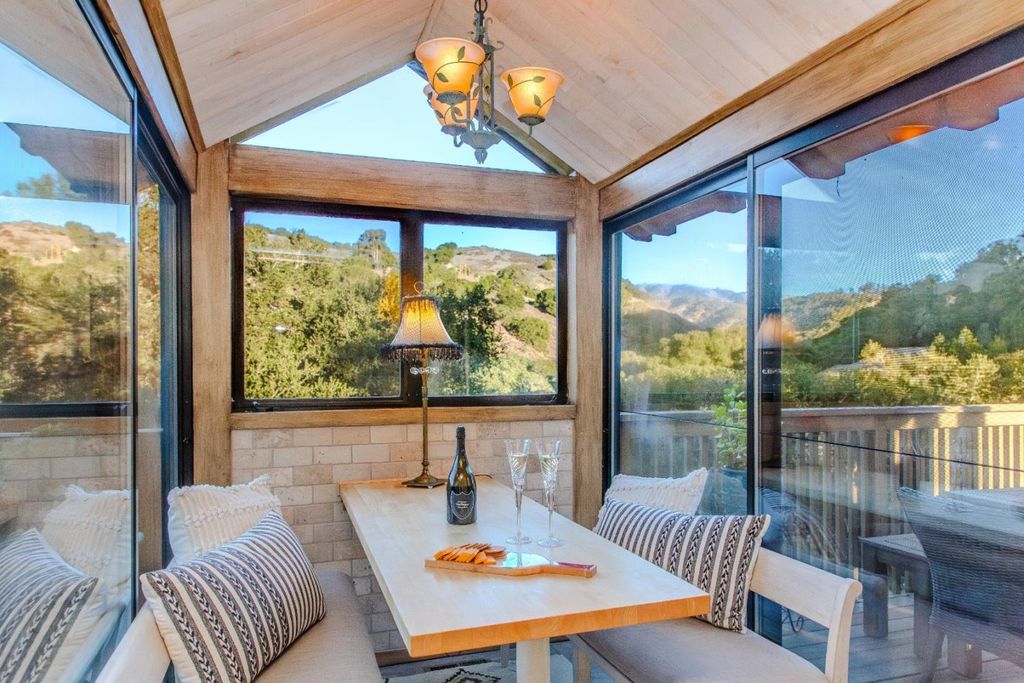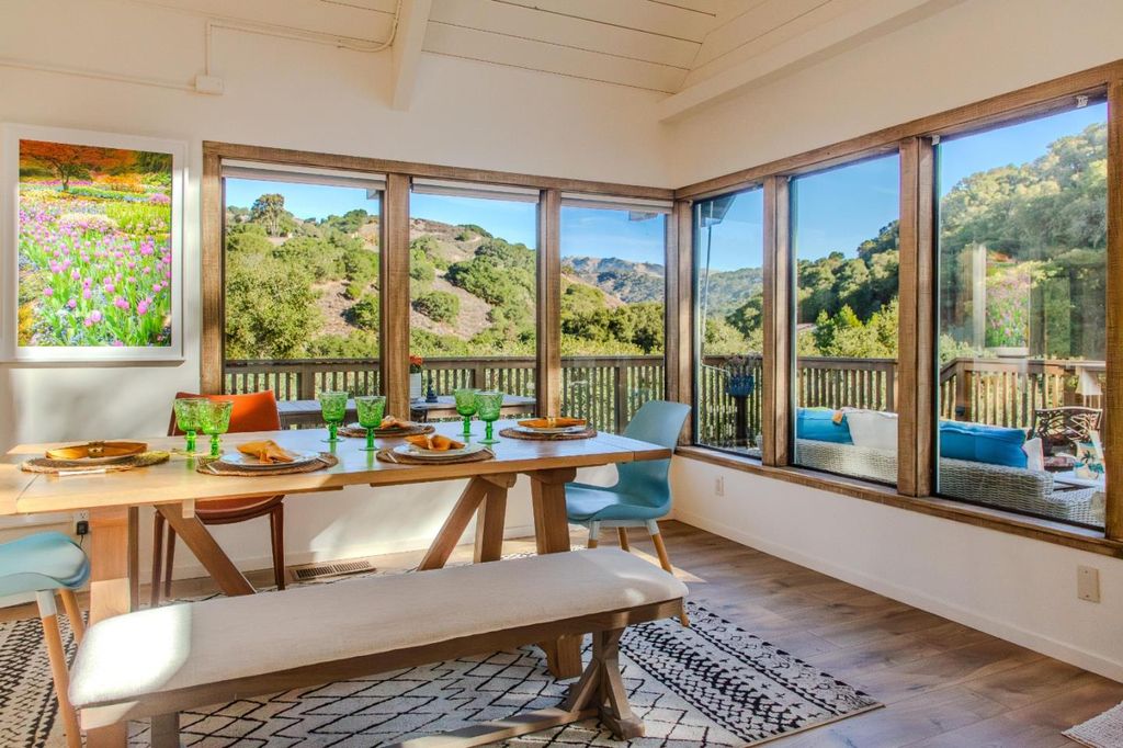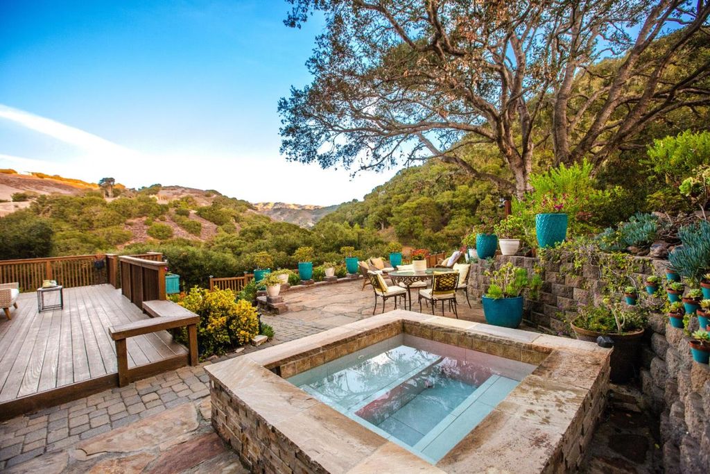 Cinematic and resplendent, the sky above Corral de Tierra's layered hillsides is a vast screen onto which Nature projects her ever-changing symphony of light and color. Shades of peach, periwinkle and lavender intermingle above the rolling mounds that define the area's topography. This property is the dream of an artist -- a sun-washed retreat where one can paint, write, read, or simply "be" in the stillness and splendor that restore the creative spirit. Built into the mountainside beneath ancient oaks, a main house and a guest house sit on an acre of land that is at once cultivated and gorgeously wild. Savor a glass of wine in one of several intimate outdoor nooks, connected by a network of paths, stones, and steps that wind through eclectic gardens of succulents, blooms, and whimsical details. Breathe in the heady countryside air as you sink into the hot waters of a stone-lined spa in perfect harmony with the landscape. Light reigns supreme in the open living area, pouring through walls of architectural windows to illuminate warm wood floors, exposed beams, and stone-accented granite counters. A lofted bedroom suite also embraces the light -- and those views. Live a life where the first and last sight you see each day stirs the imagination, calms the mind, and lifts the soul.