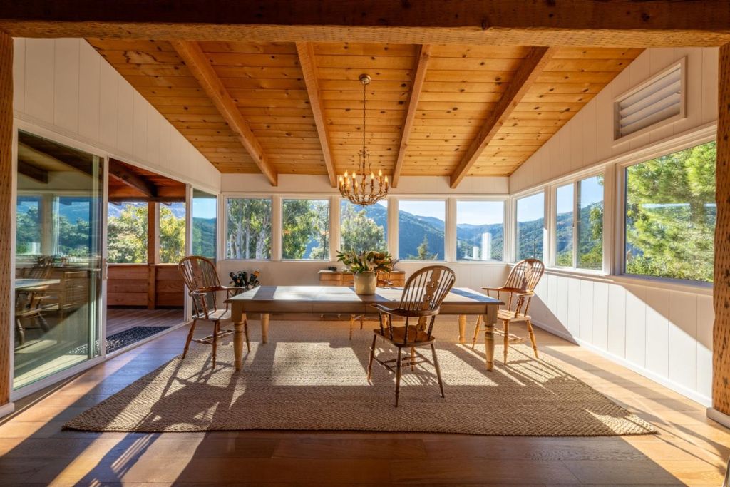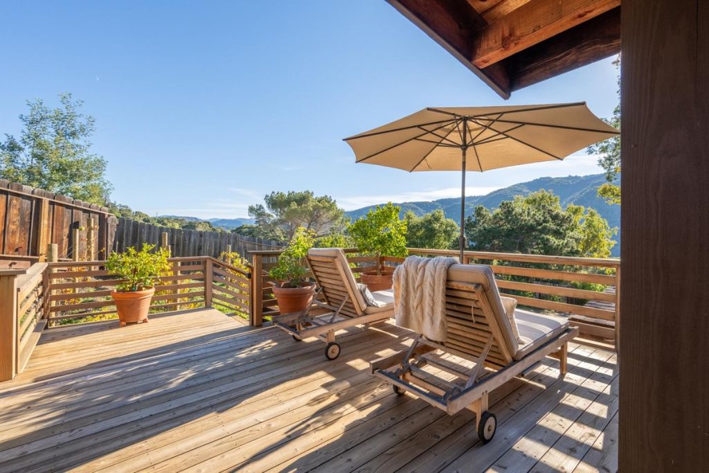 Meticulously remodeled with exceptional craftsmanship combining luxury and flexibility. 233 Country Club Drive offers sweeping east-to-west views of the Santa Lucias, Garland Ranch, and Garzas Canyon from the entire main living space. The main level features 3 bedrooms and 2 bathrooms, anchored by dramatic architectural timber mantle, floor-to-ceiling beams, and massive ridge beam that are rumored to be reclaimed from the historic Esalen bridge in Big Sur, paired with French oak floors and cedar-heart redwood accents. The kitchen includes Carrara marble, a 6-burner Viking range, Viking refrigerator & dishwasher along with custom solid birch cabinetry. The spacious dining room captures the same panoramic vistas, while an additional open-air dining room invites effortless indoor-outdoor living. The private primary suite offers a luxurious bath, soaking tub, and French doors to a garden patio. The separate lower-level unit features its own kitchen, living room, bedroom, bathroom, and bonus room that poses as a second bedroom. ideal for guests, extended family, or income potential. This nearly half an acre property includes lounging decks, a vineyard, hot tub, fire pit, and room for an Airstream.