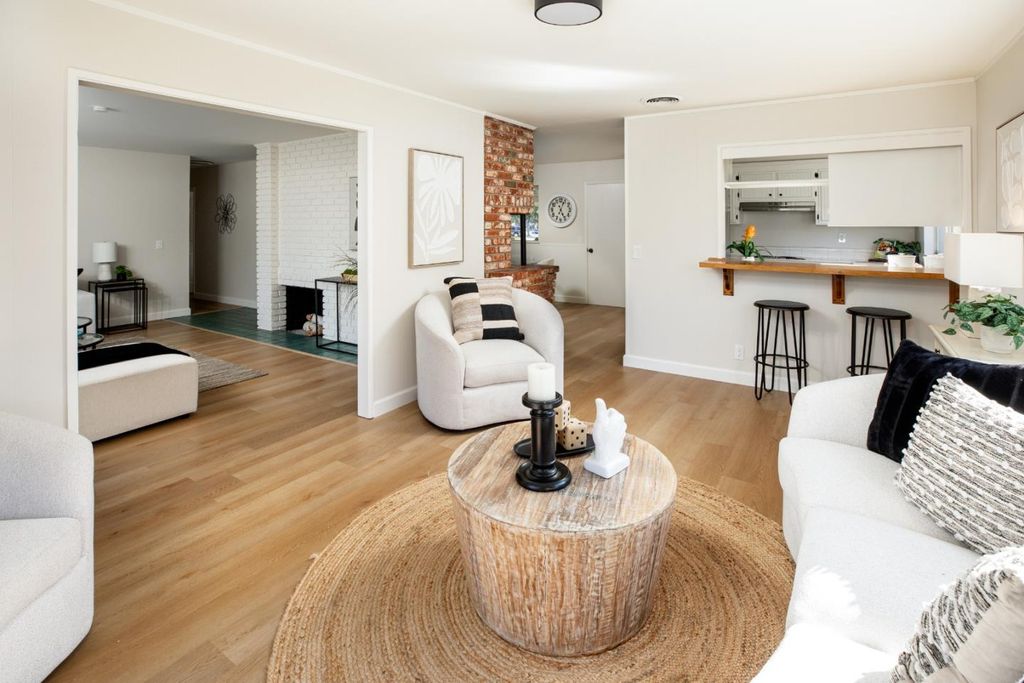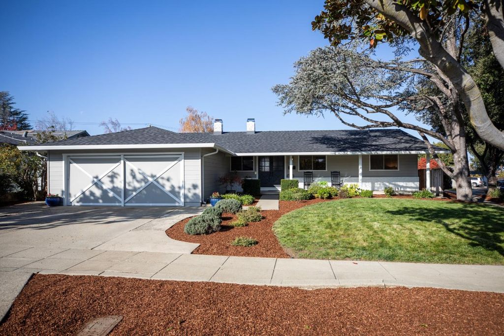 Beautifully updated home within close proximity to Downtown Sunnyvale shopping and dining, community parks and excellent schools including Homestead High. Kitchen freshly painted with stainless steel appliances, tile countertops and breakfast bar seating, Living Room with cozy fireplace, Separate Family Room opens to the kitchen ideal for entertaining, Dining Area, Primary suite with access to the back patio and bath with updated tile shower, Fresh interior paint throughout, New Flooring and baseboards, New electrical outlets, switches and face plates, New door hardware, Central heating, New electrical panel, Fresh exterior paint, New composition roof and gutters, Spacious corner lot with mature landscape and patio areas ideal for entertaining.