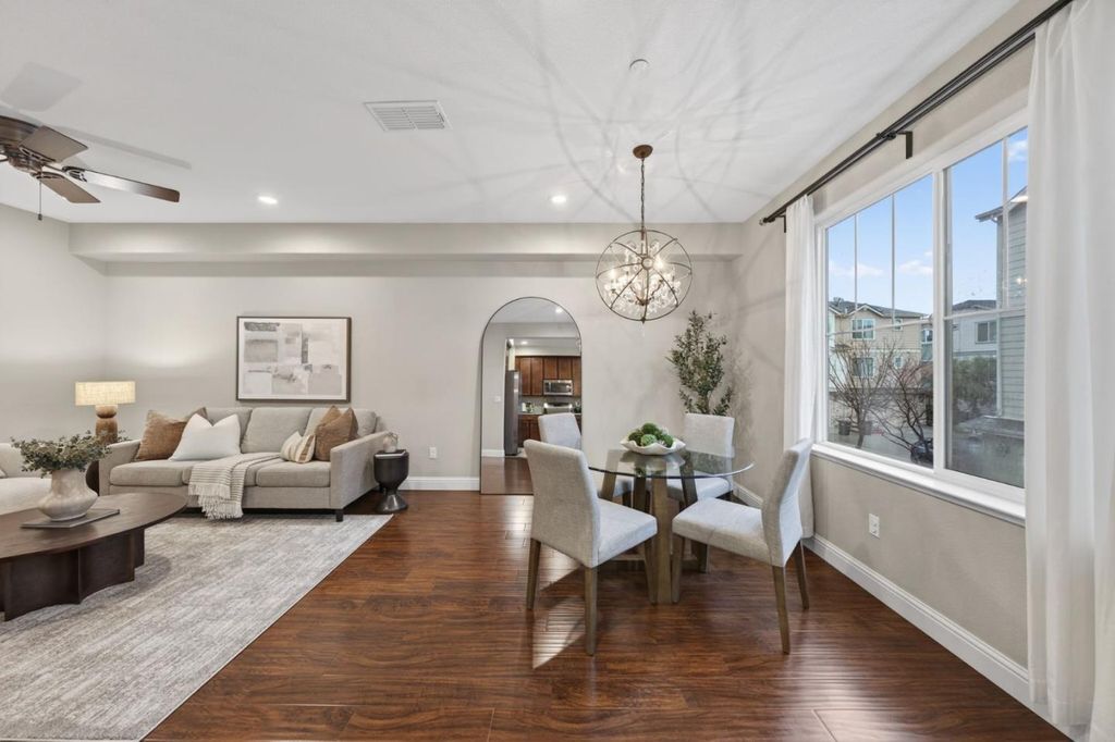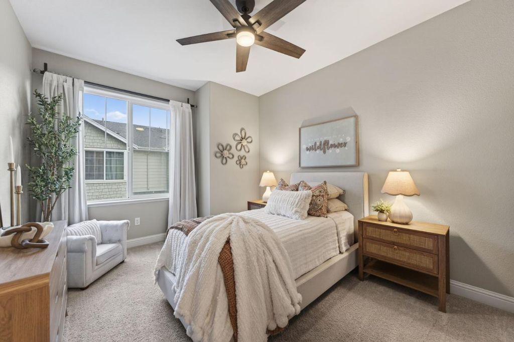 Welcome to this beautifully updated 3-bedroom, 3-bathroom home in the highly desirable Madrone Plaza community of North Morgan Hill an ideal location for Bay Area commuters. Built in 2014, this 1,773 sq. ft. residence blends comfort, style, and convenience. The home features an inviting open-concept living and dining area, a spacious primary suite with a en-suite bathroom complete with a double vanity, soaking tub, separate shower, and walk-in closet. Two additional light-filled bedrooms and two more full bathrooms. Highlights include beautiful hardwood flooring, tiled bathrooms, and recessed lighting throughout. The home is equipped with blackout curtains, a Nest thermostat, an RO water filtration system, and a water softener for enhanced comfort and efficiency. An EV charger and an attached two-car garage with exceptional storage space add everyday convenience. Conveniently located near guest parking, this home also provides added ease for visitors. Residents of Madrone Plaza enjoy access to a basketball court, playgrounds, a swimming pool, and a clubhouse, all within close proximity to local shopping, dining, entertainment, and major highways for easy commuting. Dont miss your opportunity to own this exceptional home in one of Morgan Hills most sought-after communities!