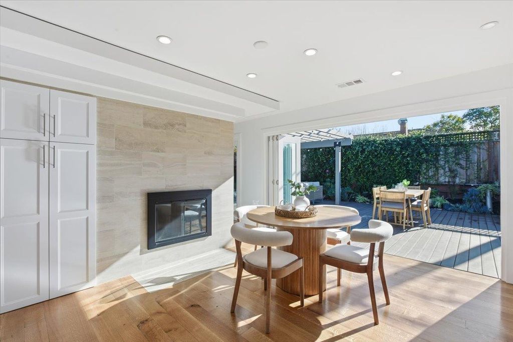 Custom 4-bed, 2-bath home showcasing thoughtful design, quality craftsmanship, fresh interior paint, & beautiful hardwood floors. The expansive living room is filled with natural light & opens through bi-fold doors to a large backyard deck, overlooking the sparkling, fenced swimming pool. The remodeled kitchen features glass composite countertops, white subway tile backsplash, farmhouse sink, & high-end appliances. Custom details are found throughout the home, including coffered ceilings, recessed lighting, and a see-through tiled gas fireplace. A versatile bonus room offers flexible space ideal for a home office or pool room. Both bathrooms are true showpieces with modern design & elegant tilework. The primary suite offers a spa-like retreat with an oversized open shower, soaking tub, double sinks, custom tile finishes, & heated floors. Additional highlights include a tankless water heater, owned solar system, rainwater collection barrel, extra attic storage, durable Ipe hardwood accents, drought-tolerant native landscaping, mature plum, blackberry, and blueberry plants. Located in a welcoming neighborhood known for its annual 4th July block party and Halloween potluck, this home offers a rare blend of custom design, indoor-outdoor living, sustainability, & community charm.