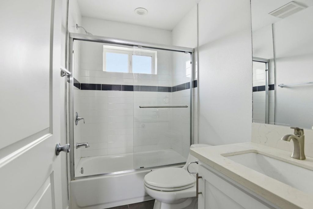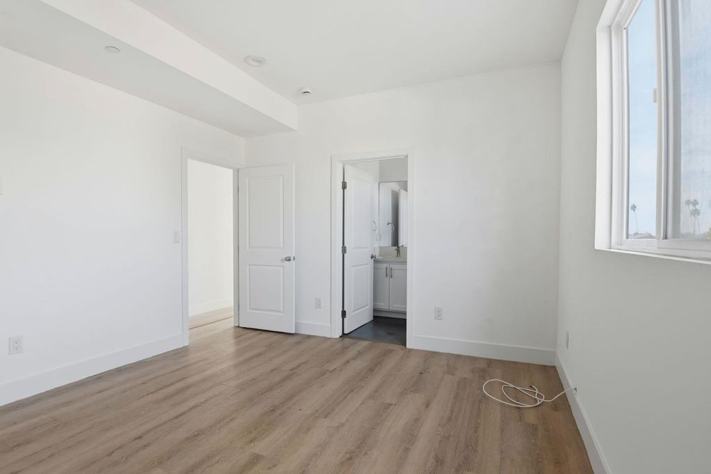 Welcome to this beautifully designed 5-bedroom, 5-bathroom residence offering approximately 2,040 square feet of thoughtfully planned living space. This modern home showcases an open-concept floor plan that seamlessly blends comfort and functionality, ideal for both everyday living and entertaining. The bright and airy kitchen serves as the heart of the home, featuring stainless steel appliances, elegant blue and white cabinetry, quartz countertops, and a classic subway tile backsplash. Flowing effortlessly into the living and dining areas, the space is enhanced by expansive windows that flood the interior with natural light. Upstairs, generously sized bedrooms provide ample closet space, while sleek, contemporary bathrooms offer refined finishes and modern convenience. Step outside to your private balcony - perfect for enjoying morning coffee or relaxing in the evening breeze. Additional features include wood-style flooring throughout, recessed lighting, and in-unit laundry hookups, adding to the homes clean, modern appeal. This exceptional property combines style, space, and comfort in a beautifully executed design - an ideal place to call home.