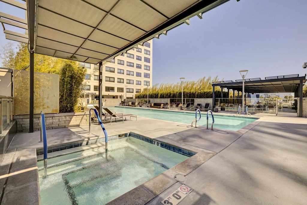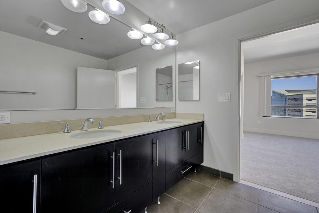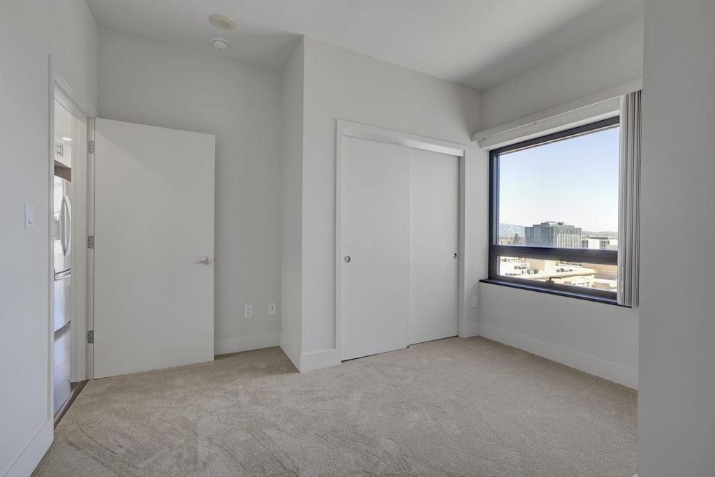 Experience elevated city living in this stunning south-facing condominium, where expansive picture windows frame sweeping views of the San Jose skyline and the mountains beyond. This move-in-ready home features fresh interior paint and brand-new bedroom carpeting. The open-concept heart of the home shines with Brazilian cherrywood flooring, granite slab countertops, and premium stainless steel appliances. Retreat to a primary suite designed for comfort, boasting picturesque views, dual spacious closets, and a refreshed ensuite with dual vanities. The unit also features an in unit laundry and gated parking. Enjoy 24/7 concierge security and world-class amenities, including a heated saltwater lap pool, a newly updated fitness center, and a rooftop deck perfect for 4th of July fireworks. HOA also includes Water & Garbage. Host guests in the clubhouse kitchen or the outdoor BBQ lounge. Steps from San Pedro Square, SJSU, Christmas in the Park, SJ Convention Ctr & SJ Museum of Art. With Adobe, Zoom, & PayPal nearby, & effortless access to VTA, Caltrain, freeways (280/87/101), SAP Ctr & Airport. Near Whole Foods, Original Joes, Il Fornaio, La Victoria Taqueria.