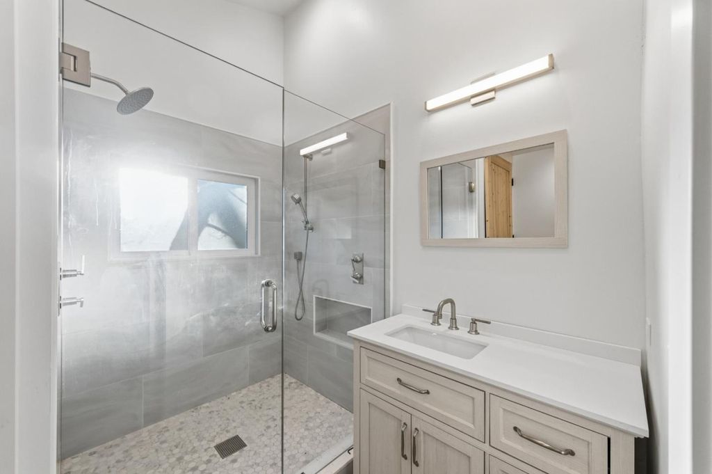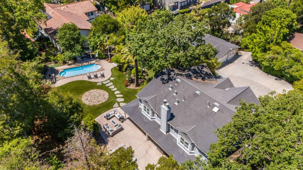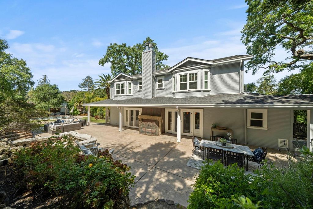 Tucked away off the street behind a private gated driveway, this exquisite 3 bedroom, 3.5 bath main residence offers over 4,500 sq ft of luxurious living space, including a versatile 1,082 sq ft finished lower level. Situated on an expansive 34,187 sq ft lot, the property is a true oasis with resort-style amenities and timeless architectural details including handcrafted wrought iron fixtures, custom woodwork, and natural stone accents. The main level boasts a chefs kitchen with a spacious center island, walk-in pantry, and top-of-the-line appliances, seamlessly connecting to the informal dining area with fireplace and the welcoming living room. A formal dining room with bay window, an additional seating area, and entry level half bath enhance the homes versatility. French doors open to the backyard featuring a sparkling pool, lounging patio, mature landscaping, and curated hardscape. The upstairs primary suite retreat offers soaring beam ceilings, a private balcony, and a spa-like bath. Two additional en-suite bedrooms and a thoughtfully designed laundry room complete the upper level. Detached three-car garage along with a 3 bedroom, 3 bath, 2,240 sqft ADU. Located moments away from the downtown San Carlos and Redwood City, parks, hiking, shopping and streamlined commute routes.