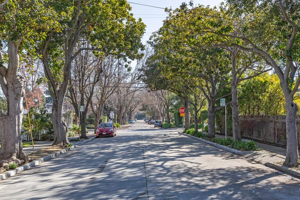 Quintessential Palo Alto bungalow with modern amenities in the coveted Community Center neighborhood. Expanded & extensively remodeled with permits in 2009, this light-filled home features hardwood floors, large windows & flexible floor plan with a spacious fourth room opening to the backyard ideal as a family room or 4th bedroom. The kitchen is anchored by a deep garden window & offers refinished custom cabinetry with soft-close drawers, pantry pullouts, soapstone counters, picket backsplash, Sub-Zero built-in refrigerator, Bosch appliances, induction cooking, Vent-A-Hood exhaust & under-cabinet lighting. The remodeled primary bath includes heated floors, steam shower, floating cabinetry, pendant lighting, wall-mounted toilet & ample storage. The hall bath features heated mosaic porcelain floors, deep soaking tub, subway tile & pedestal vanity. Professionally landscaped front & backyards offer stone pavers, outdoor lighting, gas fire-pit & private entertaining areas. Additional highlights include detached garage, gated driveway with Tesla charger, upgraded electrical & plumbing, keyless entry, tankless water heater, central heat and A/C, Caseta smart switches & new roof (2025). Walk to downtown, library, Community Center, Rinconada Pool, Art Center, zoo, top-rated schools.