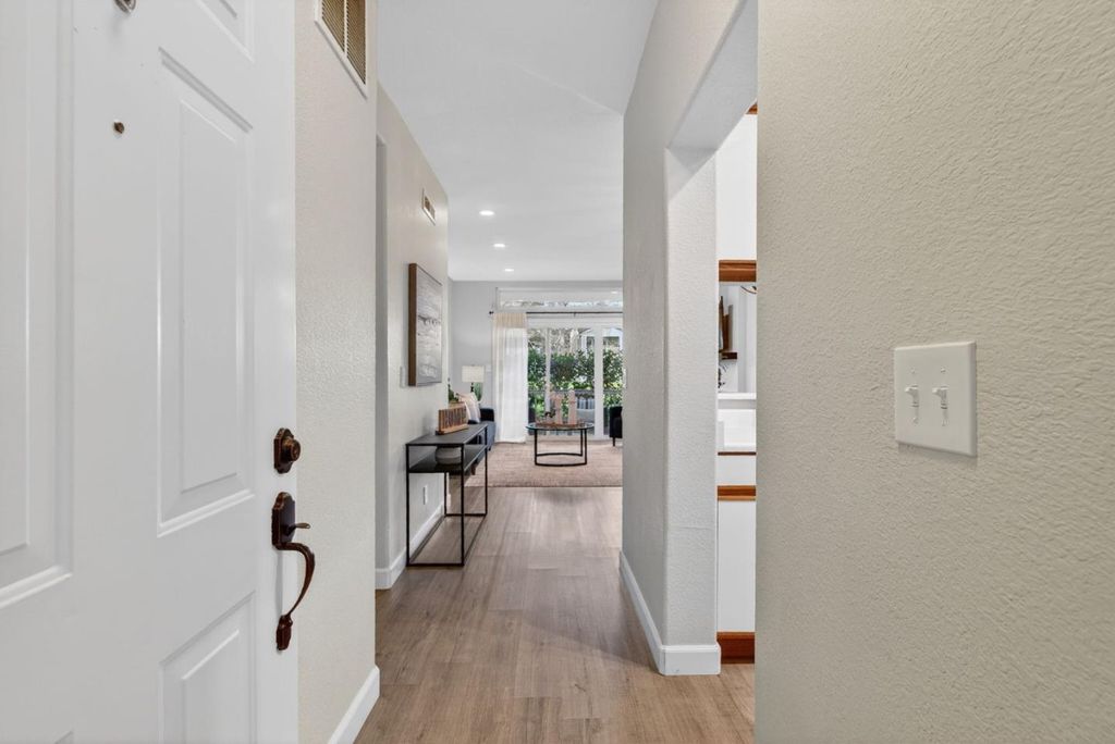 Welcome home to 172 Amesport Landing in serene Half Moon Bay! This beautiful 2-bedroom, 2-bathroom condo offers 950 square feet of living space. Step inside to updated flooring, high ceilings and transom windows to illuminate your home with natural light. The open-concept living area seamlessly connects to a patio, making it a lovely spot for morning coffee or evening relaxation overlooking the expansive greenbelt. Parking is easy, with a one-car garage, a convenient one-car carport, and additional off-street visitor parking available. Nestled in a park-like setting with majestic redwood trees and grassy areas, this home is a peaceful retreat yet conveniently close to downtown. Enjoy easy access to a variety of shops, restaurants, the beautiful beach, library, and community centers as well as convenient access to Hwy 92. Whether you're looking for a full-time residence or a weekend getaway, this Half Moon Bay gem offers the best of coastal living. Come by and see for yourself you might just fall in love and stay.
