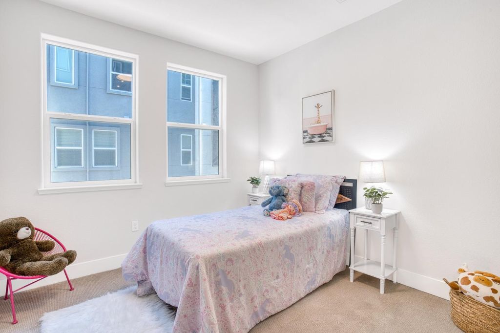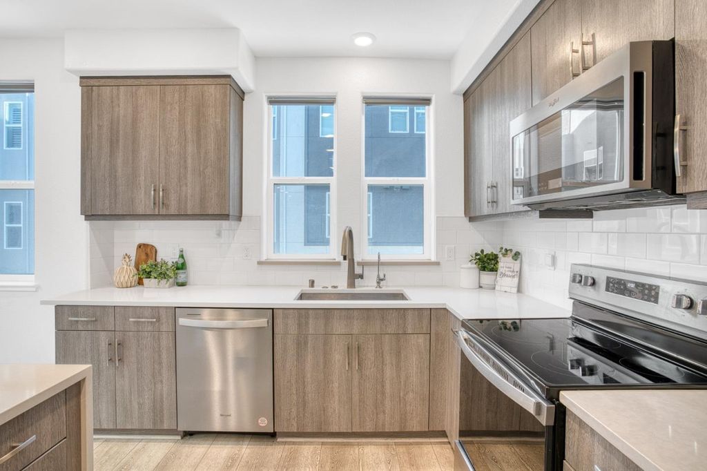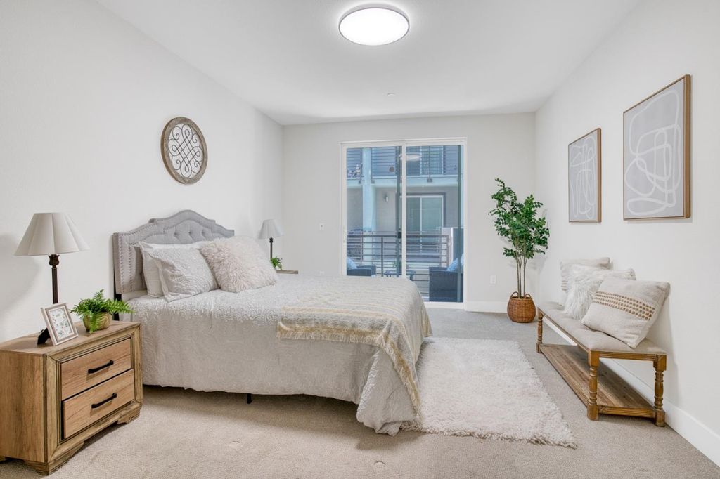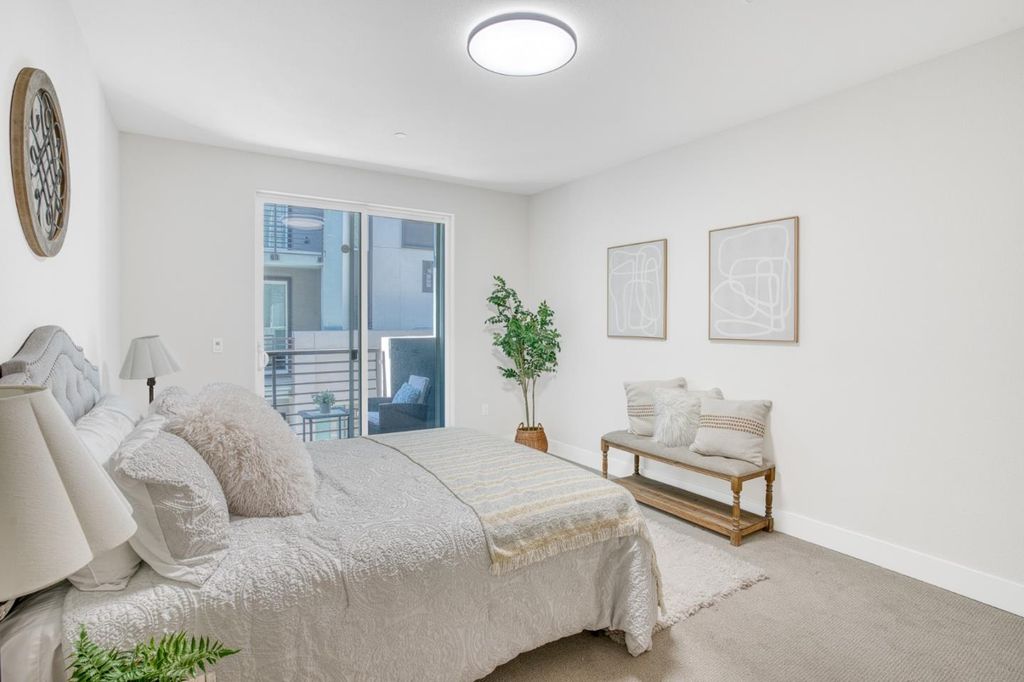 Welcome to this bright and open 2-story end-unit Townhouse style condo, just three years new and ideally located near Santana Row with quick access to major highways for an easy commute. Offering 1,661 sq ft of well-planned space, the open living and dining areas are filled with natural light and complemented by stylish flooring throughout. The spacious kitchen flows seamlessly for everyday living and entertaining. All three bedrooms and two full bathrooms are conveniently located on the same level, along with an integrated laundry area. Central AC and forced air heating provide year-round comfort, while a one-car garage offers secure parking and storage.