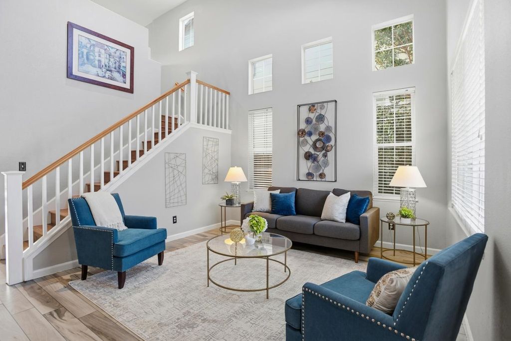 North facing University Square remodeled 4 Bedroom, 2.5 Bathrooms Home is awaiting for you! High ceilings, recessed lighting, new lighting fixtures, beautiful newer gleaming flooring, d/p windows, plantation shutters, Smart home security/Heating/A/C, remodeled Bathrooms & MORE! Kitchen has stainless steel LG appliances, gas stove, designer backsplash, 2 pantries, center island, ample cheerful white cabinets! Large Living and Family room with wood built-ins, gas started fireplace, huge windows! Amazing Primary suite with a Jacuzzi with jet tub, brass framed shower, his & hers sinks and countertops & a walk-in custom closet. All 4 bedrooms located upstairs, as is the convenient laundry room. The family room has a sliding glass door leading out to the large backyard patio. One of the LARGESTS development backyards, completed with custom pavers, it has amazing palm trees, birds of paradise plants and sweet orange tree. 2 gazebos provide for outdoor sitting and dining. Located in the University Square development, this home is within bicycling distance of both Meta and Google. Built on a quiet street, there is very little traffic. It is conveniently located to a University Square Park, IKEA, Home Depot, Nordstrom Rack. Downtown Palo Alto is about 2 miles away.