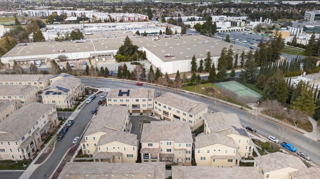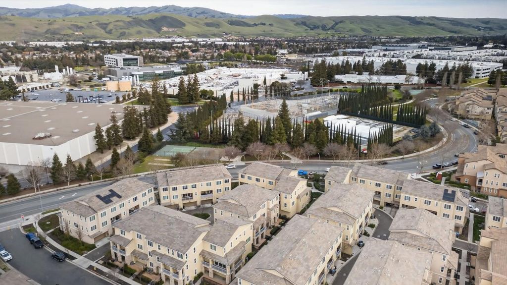 Discover elevated living at Avenue One. This turnkey, upgraded 4-bedroom, 3.5-bath end-unit townhome is just 9 years old and is located on the interior side of the community, offering a quieter setting away from freeway exposure. The sought-after floor plan features the community's largest kitchen island, paired with an expansive pantry. The light-filled open-concept living level flows from the kitchen to the living and dining areas and extends to a private balcony. Finishes include granite countertops, stainless steel appliances with a gas range, soft-close cabinetry, recessed lighting, custom fixtures, and built-in storage. A first-floor bedroom with a full bath offers flexibility for guests or a home office. Upstairs, the primary suite features dual vanities, a walk-in shower, a soaking tub, a walk-in closet, two additional bedrooms, and a side-by-side laundry. Additional highlights include wired AT&T Fiber internet, 3-zone HVAC with independent climate control including an Ecobee smart thermostat, smart-home features, and a two-car garage equipped with 240V EV-ready outlet. Residents enjoy a clubhouse with pool, spa, fitness center, BBQ areas, playground, gated dog park, nearby parks, and convenient access to Costco, Village Oaks, VTA Light Rail, and Highways 85 and 101.