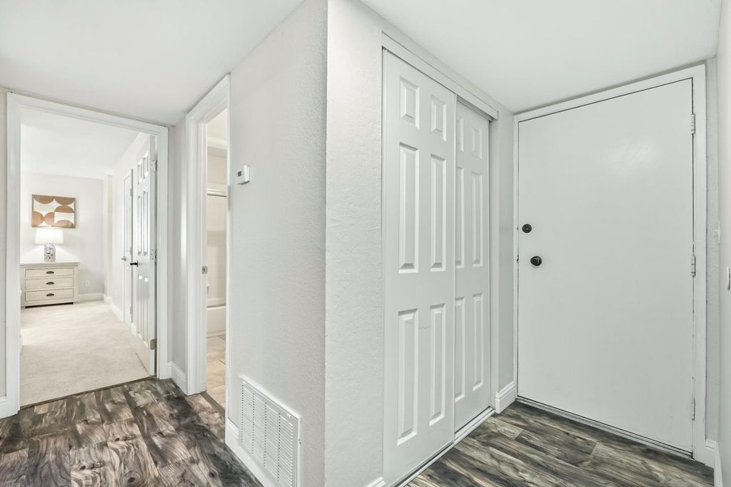 Welcome to 310 Tradewinds Dr #8, a beautifully updated top-floor home offering the largest floor plan in the community with 3 bedrooms, 2 full bathrooms, and 1,252 sq ft of comfortable living space. This move-in-ready home features new paint, new flooring, and brand-new carpet, with an open-concept layout that includes upgraded chefs kitchen and dining area. Enjoy hardwood floors in the main areas, plush carpet in the bedrooms, custom double closets, and central A/C and heating. Step out onto your private balcony surrounded by mature trees for a sense of peace and privacy. The community offers fantastic amenities including an indoor pool, gym, basketball and racquetball courts, plus a reserved carport. Conveniently located close to shopping, dining, freeways, and more. This home combines space, style, and location in one perfect package. HOA COVER GARBAGE, WATER AND HOT WATER