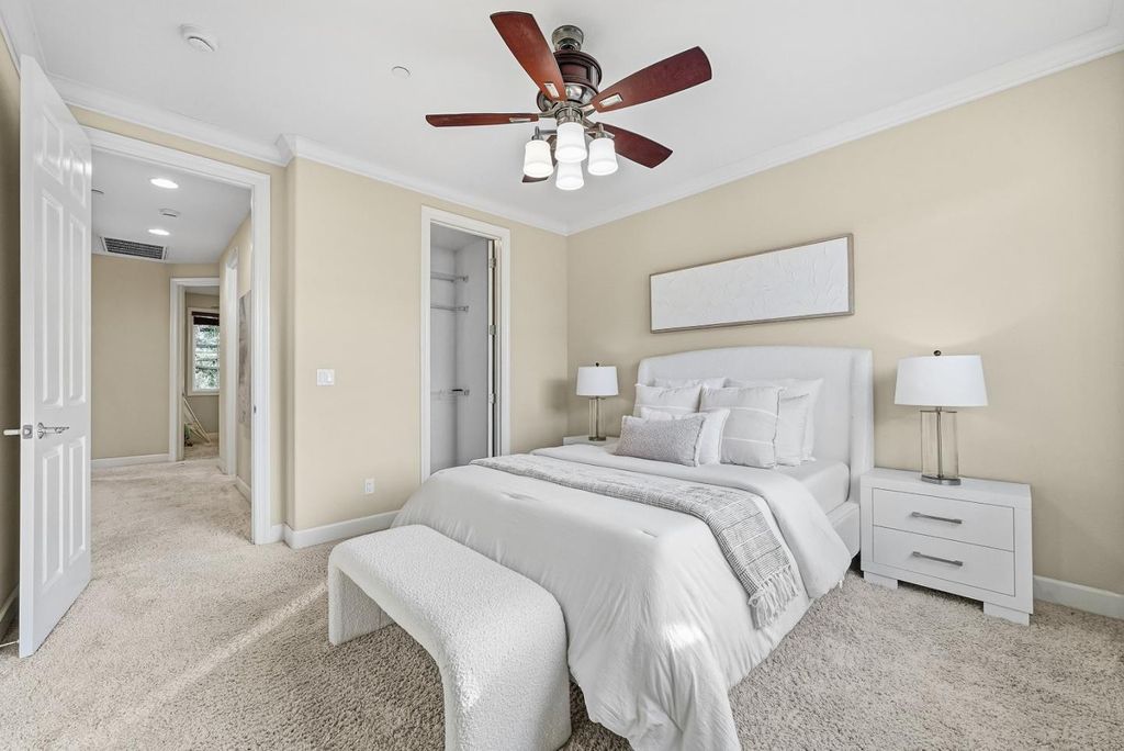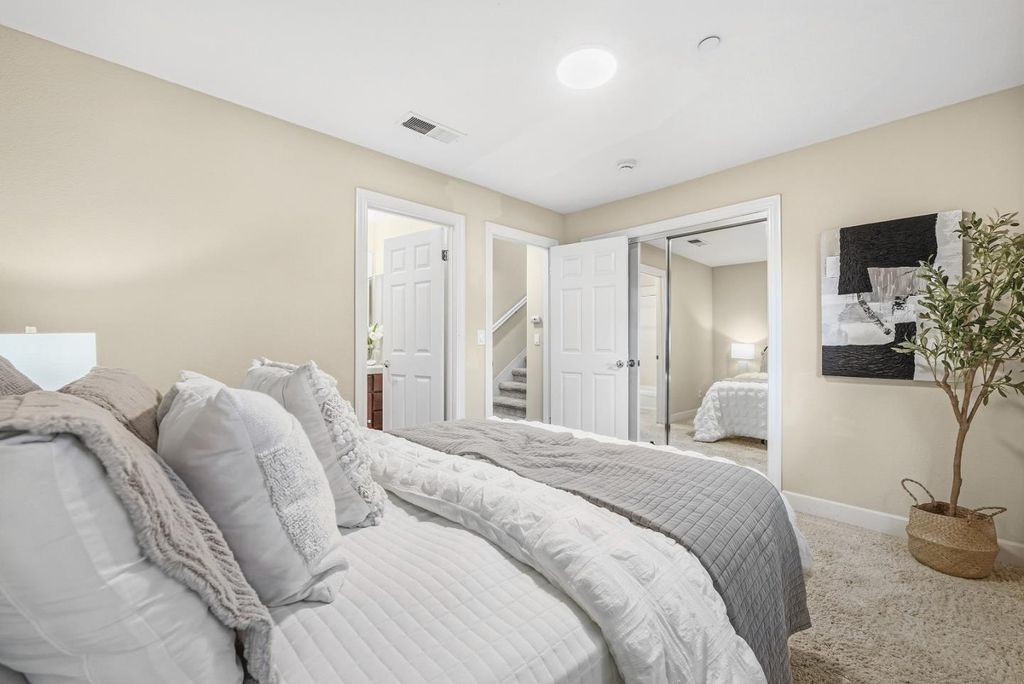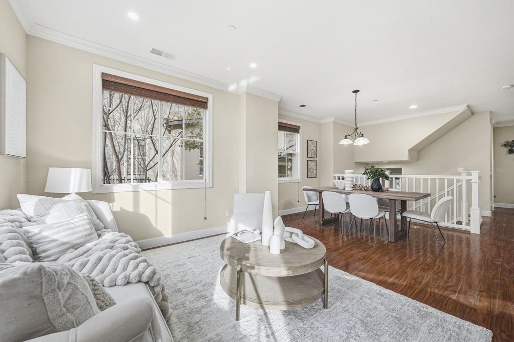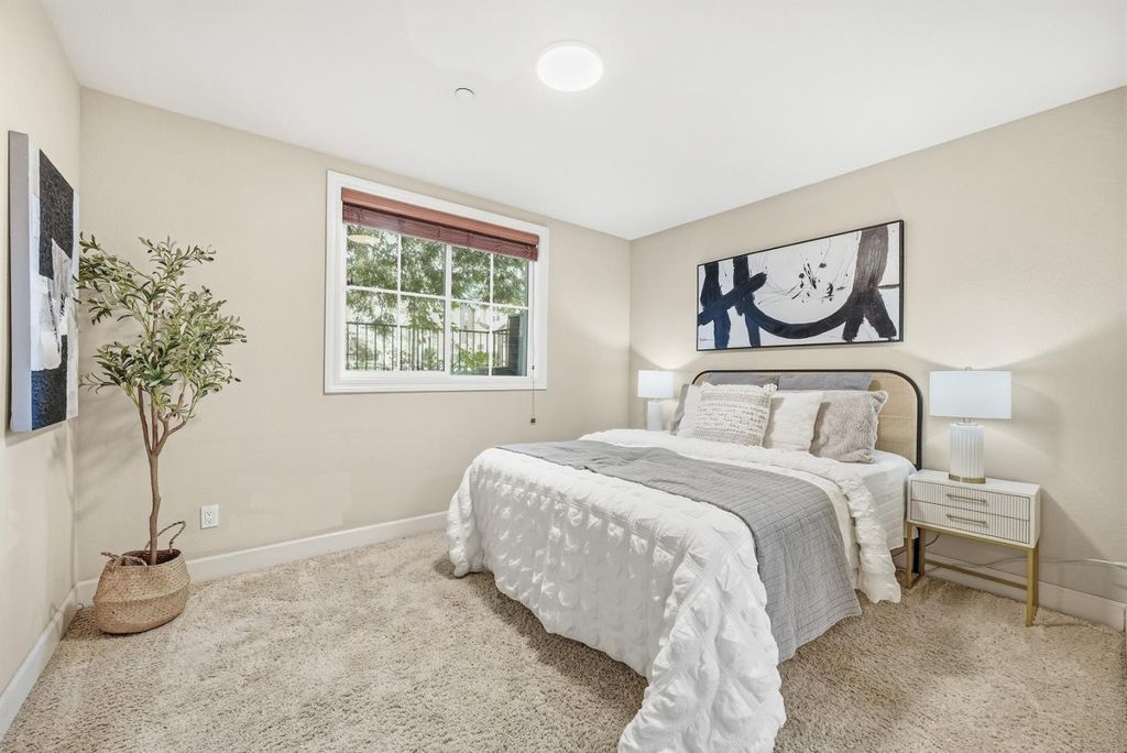 North Facing. Welcome to this end unit townhome in the highly sought-after City Park community within Sunnyvale. This elegant 4-bedroom, 3.5-bathroom townhome offers 1,725 square feet of living space. Bright and airy, the home benefits from abundant natural light through the extra end unit windows.The main level features an open living room, and family/dining room combo, The kitchen boasts top-of-the-line cabinetry, stainless steel appliances and granite counters, a breakfast island, perfect for entertaining. The private downstairs junior suite is perfect for in-laws or visitors or even a study. The upstairs, primary bedroom features a walk-in closet, tub, shower, and dual sinks. Two additional spacious bedrooms and a hallway bathroom complete the upper level. Hoa covers garbage fee. Close proximity within close proximity to Seven Seas Park, downtown, shops, commuting routes and top Silicon Valley employers.