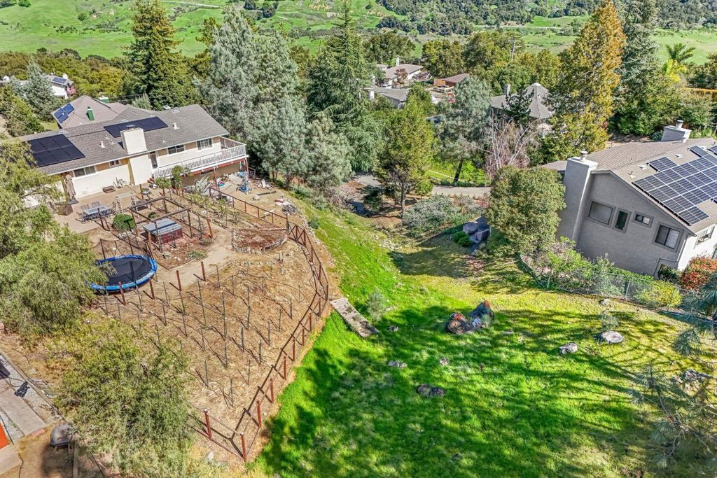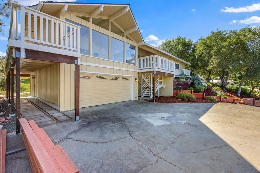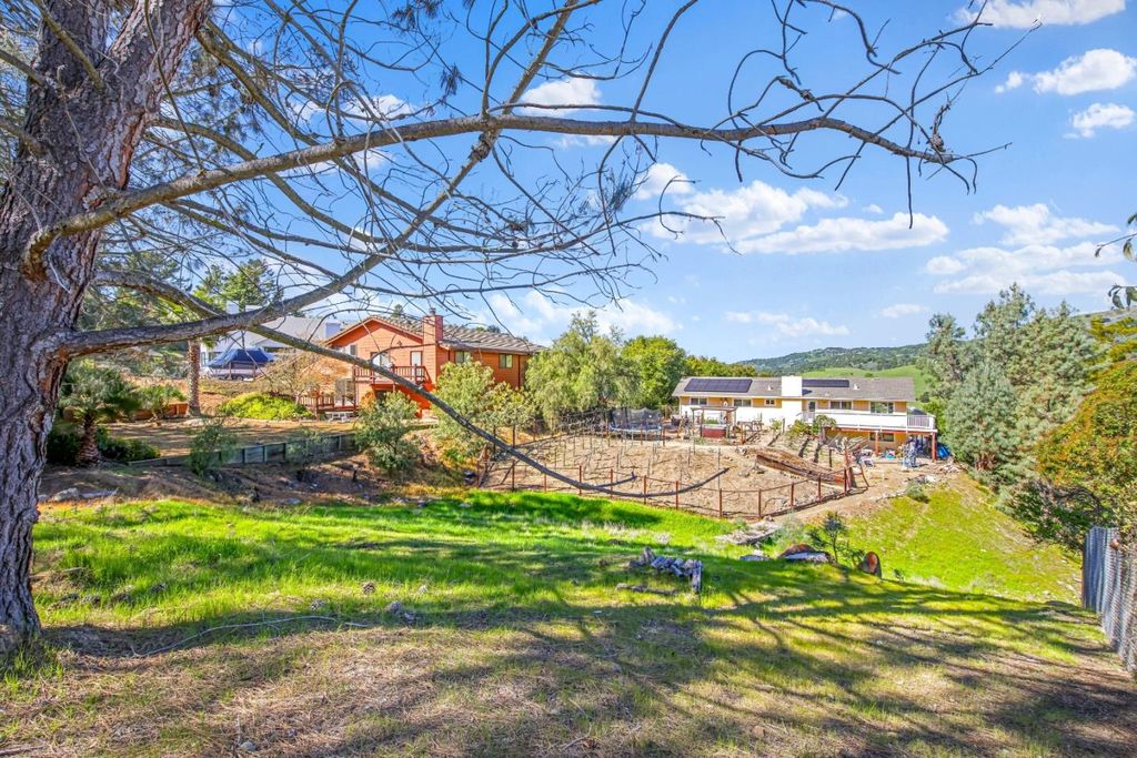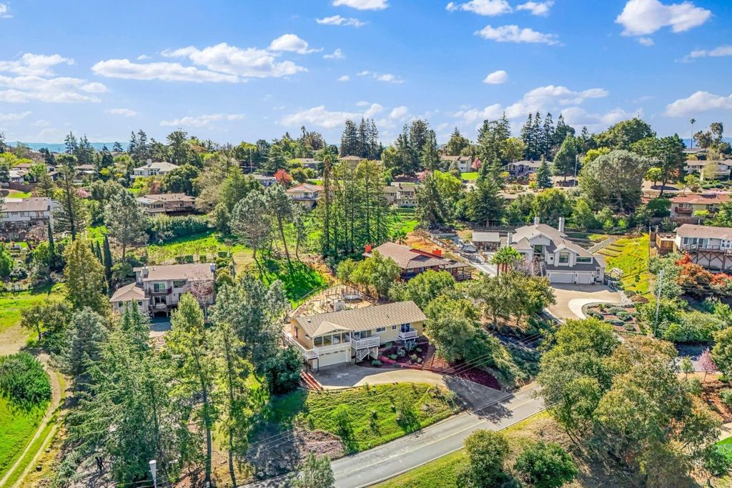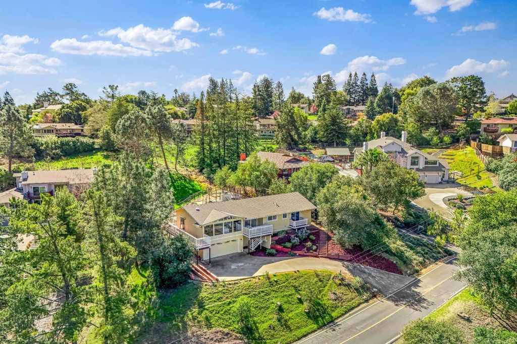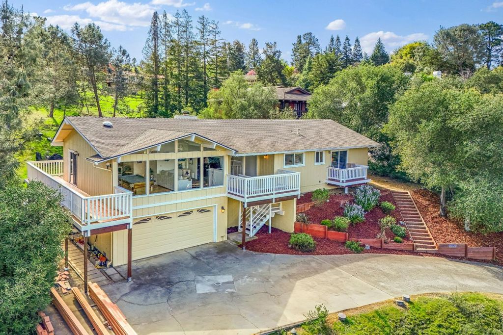 Perched among the rolling hills of Morgan Hill's coveted Holiday Lake Estates, this is a rare opportunity to own a view-filled hillside sanctuary where breathtaking panoramic vistas, privacy, and over half an acre of mostly usable land come together in one extraordinary package. Soaring vaulted ceilings with rich exposed beams and walls of windows frame sweeping views of the mountains and lake, flooding every room with natural light. Step onto the newly upgraded deck for peaceful mornings, golden-hour sunsets, and the kind of quiet that's increasingly rare so close to Silicon Valley. The 22,000+ sq ft lot is mostly level and highly usable with endless possibilities and a wide-open space to breathe and play. A true blank canvas with a view as the backdrop. Major infrastructure upgrades already done: leased solar with a Tesla Powerwall, copper plumbing, electrical panel upgrade and a recently replaced sewer lateral. Updated bathrooms, open layout with a wood-burning fireplace, and a 2-car garage round out the package. Minutes from downtown Morgan Hill, award-winning wineries, and trails with easy Bay Area access. Homes with this combination of views, land, and location rarely come to market. This one is your sign.