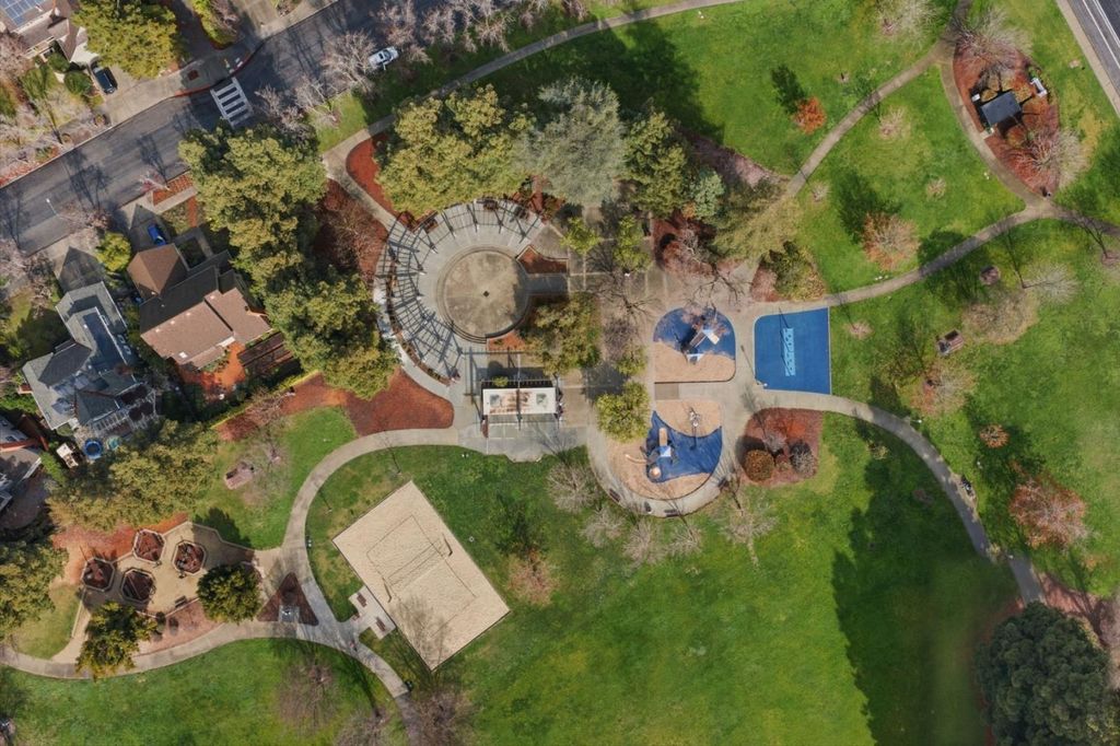 Sylvan Greens Charming Single Level Beauty. Host everything from casual hangouts to big celebrations in expansive living areas with soaring ceilings, a greenbelt with playground right across the street, with Sylvan Park just steps away. Floor-to-ceiling windows along the front frame park views from the updated kitchen and open-concept family room, creating a bright, connected everyday living space. The dining and living rooms flow together seamlessly under high ceilings, with large windows and glass doors that open to the private, landscaped yard for easy indoor-outdoor entertaining. The primary suite features direct access to the garden and a spacious updated ensuite bath, while the generous second bedroom opens to a serene, verdant atrium. Freshly updated and thoughtfully designed for both fun gatherings and comfortable daily living, this home sits just moments from the park and offers a straightforward commute to major tech employers and the rest of Silicon Valley. Must See!