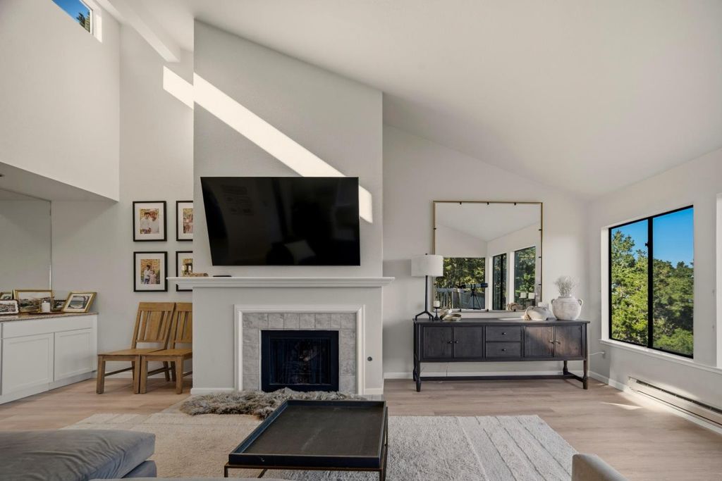 Inside the gates of Pebble Beach, this upper-floor residence offers some of the finest views available in Shepherds Knoll and beyond. This corner penthouse showcases sweeping panoramic vistas, from the beach and graceful curve of Monterey Bay to the iconic bell tower of the Naval Postgraduate School. These mesmerizing views also include the fairways of Del Monte Golf Course, airport takeoffs and landings, the rolling hills of Fort Ord, and the mountains overlooking the Salinas Valley stretching to Fremont Peak. Facing east with additional corner windows to the south, this residence captures radiant sunrises and warm early afternoon light, transitioning beautifully to the twinkling lights of Monterey in the evening. One of only 10 corner penthouse units in the complex, this home features a spacious great room with a soaring vaulted ceiling along with three bedrooms, three full baths, abundant storage, an in-unit laundry area, carport parking and a private garage conveniently located nearby.