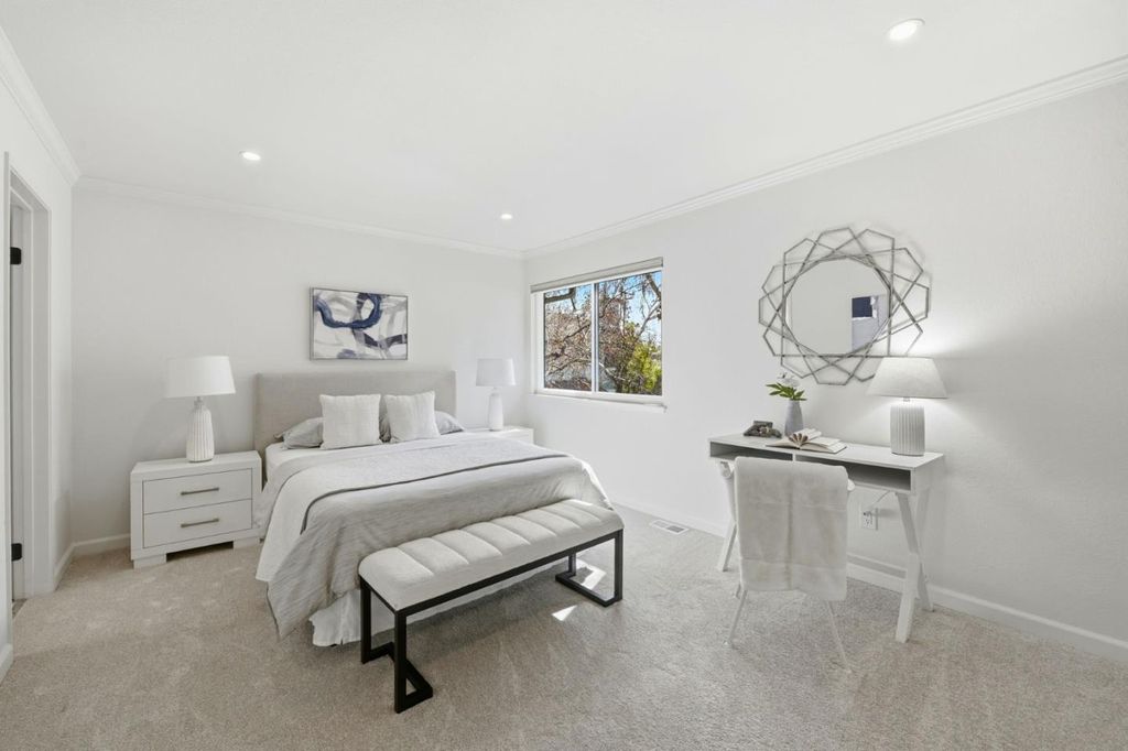 Welcome to 477 Quail Bush Ct, an end-unit condo nestled in the heart of Silicon Valley. This well-maintained home features 2 ensuite primary bedrooms, 2.5-bathrooms over 1,117 sq. ft. of living space. As a rare bonus, the property includes a single-car garage plus an adjacent carport, ensuring ample parking. Step inside to discover an efficient floor plan enhanced by fresh paint, new recessed lighting, and plush new carpet offering a move-in ready experience. The inviting living area is perfect for entertaining or relaxing by the cozy fireplace. The kitchen features new appliances and provides plenty of counter and cabinet space, making meal prep a breeze. Upstairs, two generously sized bedrooms each featuring its own en-suite bathroom for ultimate privacy and convenience. Outside, the private, spacious patio offers a quiet spot to sip your morning coffee or host a small gathering. Located in a highly desirable area with low HOAs, this home delivers the perfect balance of suburban tranquility and urban access. You're just minutes from major destinations like Valley Fair and Santana Row (1.2 miles), Apple HQ (4.1 miles), and SJ Airport (6 miles). Whether you're a first-time buyer, downsizing, or seeking a low maintenance, lock-and-leave lifestyle, this is your opportunity.