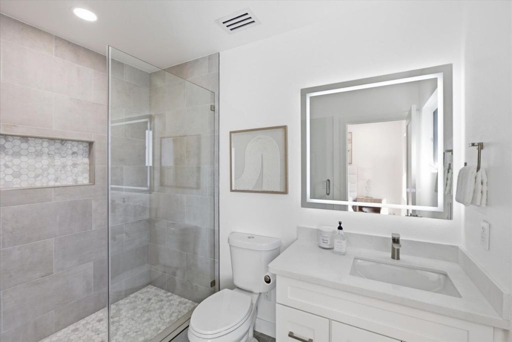 Keeping it clean and simple at this sunlit 4 bedroom, 3 bath single story home, offering endless possibilities plus a separate 1,200 sq. ft., 2 bedroom, 2 bath ADU, all nestled on a generous 14,552 sq. ft. lot near downtown Los Altos. The inviting open concept great room floor plan flows seamlessly to an oversized, private backyard featuring multiple patios & a dedicated play area, ideal for entertaining or everyday enjoyment. A separate family room boasts a vaulted beam ceiling & natural lighting throughout. Guest accommodations are generously sized and include a junior en-suite with ample closet space. The primary bedroom suite offers a walk-in closet, a spa-like bath with dual vanities, and sliding glass doors that open directly to the expansive backyard. The spacious ADU is equally impressive, featuring a large living room with vaulted ceilings & glass doors that open to a private patio & shared backyard. It includes a large primary suite with a walk-in closet, a sizable guest bedroom, and an additional bonus den/office, perfect for flexible living, guests, or rental income. Additional highlights include central heating and air conditioning, paver walkways and patios, and new electrical, plumbing, and roof, making this a truly exceptional and versatile property to call home.