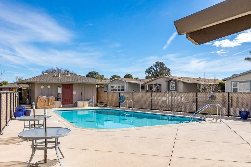 Welcome to a sophisticated 3Bd. 2Ba. that welcomes you from the moment you step inside! The open concept Chefs kitchen with custom cabinetry and granite counters allows everyone to enjoy visiting! The dining area flows from the kitchen and feels a part of all the laughter and conversations with family and friends! From the kitchen you can step outside to the private center deck while you BBQ, visit, and relax outside. Down the hall are the 3 bedrooms with wonderful natural light.The primary suite is a relaxing get-away with new carpet, and a sliding glass door to the private sunny deck. It enjoys a walk-in closet, spacious shower, and spa -like feel. The second full bath has similar quality details. Close to Seacliff Beach, restaurants, and shopping a short walk away. Or stay at home and enjoy your own pool! A wonderful Senior Park 55yrs. and Resident Owned.