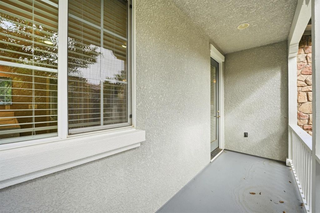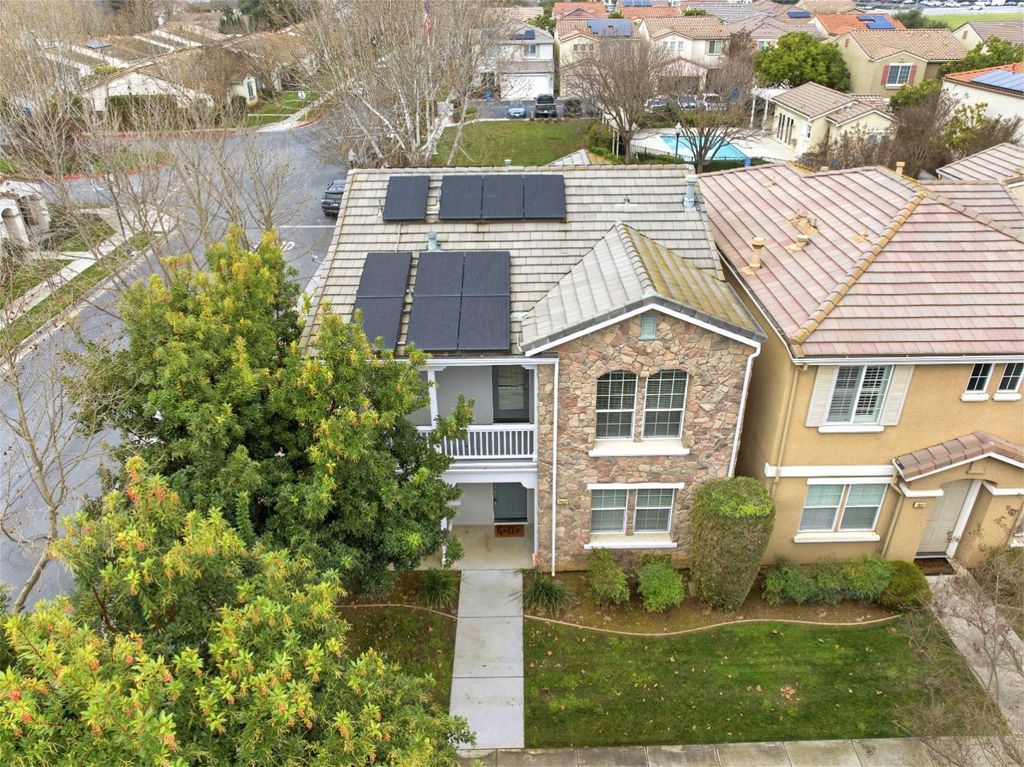 Set on a spacious corner lot with charming curb appeal and a stone facade, this move-in-ready home has a rare private lunai/patio and open view of grassy common area, pool, and spa. The most convenient location for community amenities. Inside, a bright, open-concept layout features a cozy fireplace and flows seamlessly into the dining room or kitchen. The kitchen impresses with granite countertops and ample cabinetry. Approximately $30,000 in upgrades over the past two years enhance comfort and style, including kitchen appliances, new wood flooring throughout the first floor, new carpeting upstairs, tile floors in both bathrooms, a full-length mirror on the master bedroom door, a privacy door for the master toilet, and a Jacuzzi tub in the primary suite. Additional improvements provide peace of mind: a brand-new 75-gallon water heater, all new 10-year smoke detectors, LED fluorescent lighting in the garage and laundry room, and solar panels for energy-efficient living. Outdoor living is effortless with a covered patio and upstairs balcony, off the primary bedroom. Exterior trim painted in 2024. Ready to unwind? Enjoy the community pool and spa, an escape close to home.