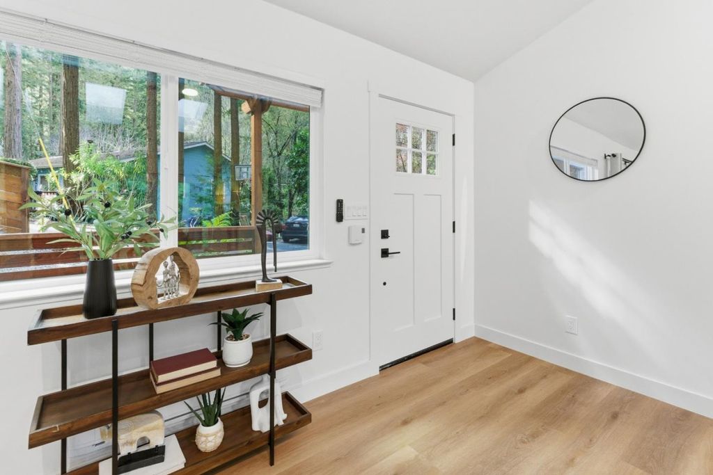 Welcome to Trinkling Creek ÃÂ - your new home in the enchanting redwood forest! Enjoy end-of-the-road privacy & nature all around you in this recently updated, turn-key gem. This single-story home boasts vaulted ceilings, abundant windows, skylights, & absolutely stunning finishes. Gourmet kitchen, designed with entertaining in mind, opens onto a deck overlooking the forest - perfect for BBQs, morning coffee, or afternoon relaxation! Primary suite features a luxurious private bathroom. Each bedroom has a closet & windows letting in the beautiful redwood forest. Even more expansive views can be enjoyed from the upper deck while basking in the serenity of your own private garden. Fully updated with new: roof, 200 amp electric panel, floors, windows, cabinetry, quartz counters, fresh paint, stainless steel appliances, oversized washer/dryer, electric powered fireplace, and more. This ~1/4 acre property gives you space to spread out, entertain, & enjoy the storybook-like setting. Private road is paved right to the entry. Parking for 3+ cars. Prime location 10 minutes to Felton, 15 to Scotts Valley, & 20 minutes to Santa Cruz. A stone's throw from the splendor of Loch Lomond Recreation Area. This home is move-in ready; the only thing missing is you!