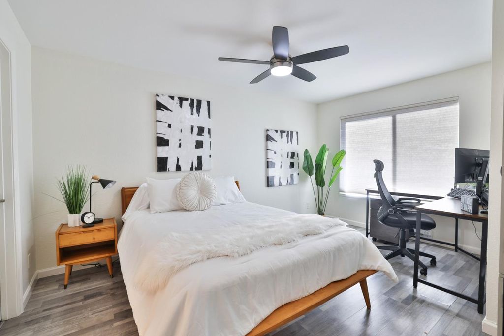 Welcome to Sierra Crest - 880 Catkin Court, San Jose. This beautifully refreshed first-floor 2-bed, 2-bath condo offers 922 square feet of comfortable, move-in ready living. Freshly painted walls, ceilings, and trim, the home feels bright and renewed from the moment you walk in. The kitchen features granite countertops, dishwasher, garbage disposal, new microwave, electric range, and refrigerator - everything you need for effortless meal prep. New recessed lighting now enhances the ambiance, creating a modern and inviting glow throughout the main living areas. Both bathrooms have been thoughtfully updated with reglazed tubs, and new lighting - giving each a clean, spa-like feel. The home also includes convenient inside laundry with washer and new dryer. Beautiful laminate and travertine flooring flows throughout, complemented by stylish ceiling fan/light fixtures in the bedrooms and living room. Two walk-in closets add practical storage in each bedroom, while baseboard heating keeps things cozy. The enclosed patio offers privacy and a secure storage closet. Residents enjoy access to two pools, hot tubs, and fitness centers, a club house, manicured grounds and guest parking. Located in the Campbell Union School District with easy access to shopping, dining, and commute routes.