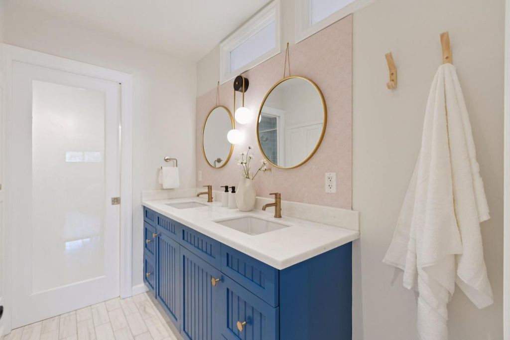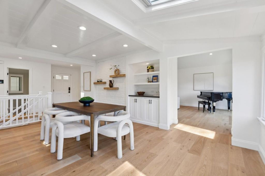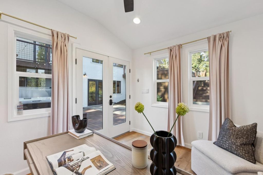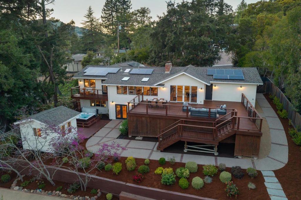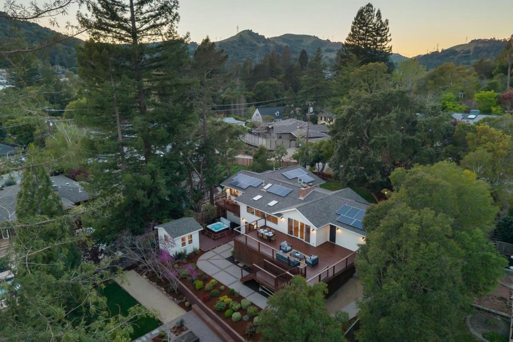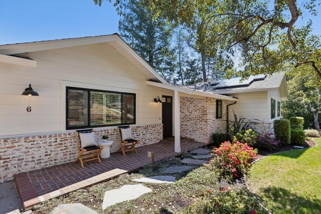 Set along a private hillside in one of Orindas most desirable enclaves, this beautifully updated California Ranch offers refined living on a usable 12,800sq ft lot with hillside views. Thoughtfully renovated by current owners, the 2,789 sq ft home features wide plank oak eng hardwd floors, fresh interior/exterior paint, and new Pella Impervia windows (front, 2023). The chefs kitchen is the heart of the home, appointed with Wolf dbl oven range w/ griddle, Sub-Zero fridge, Bosch 800 panel DW (2024), built-in Wolf microwave, large filtered-water sink, and custom cabinetry. It opens seamlessly to the living room with mosaic tile fireplace, floor-to-ceiling built-ins, and wall-to-wall sliders leading to an expansive elevated deck overlooking the private yard. The primary suite features high ceilings, walk-in closet, spa bath w/ jetted Kohler tub, quartz counters, skylight, and French doors to private deck. 5 BD, 3 BA total, incl flexible office and guest spaces. All bdrms networked with ethernet. New hot water heater 2024. Rear grounds include jacuzzi spa (2023), bocce court, raised irrigated planters, fenced yard, dog run, and finished 120± sq ft office/gym. Full owned solar and wifi enabled irrigation Walk to Del Rey Elem, Orinda Int, and Miramonte HS, all top-rated schools.