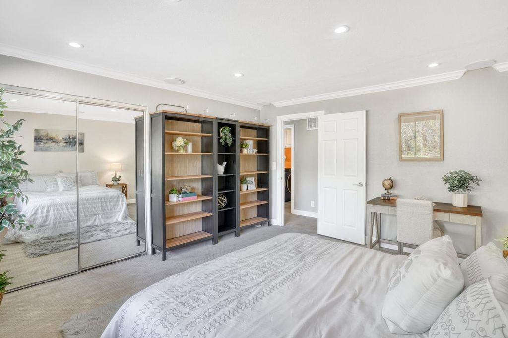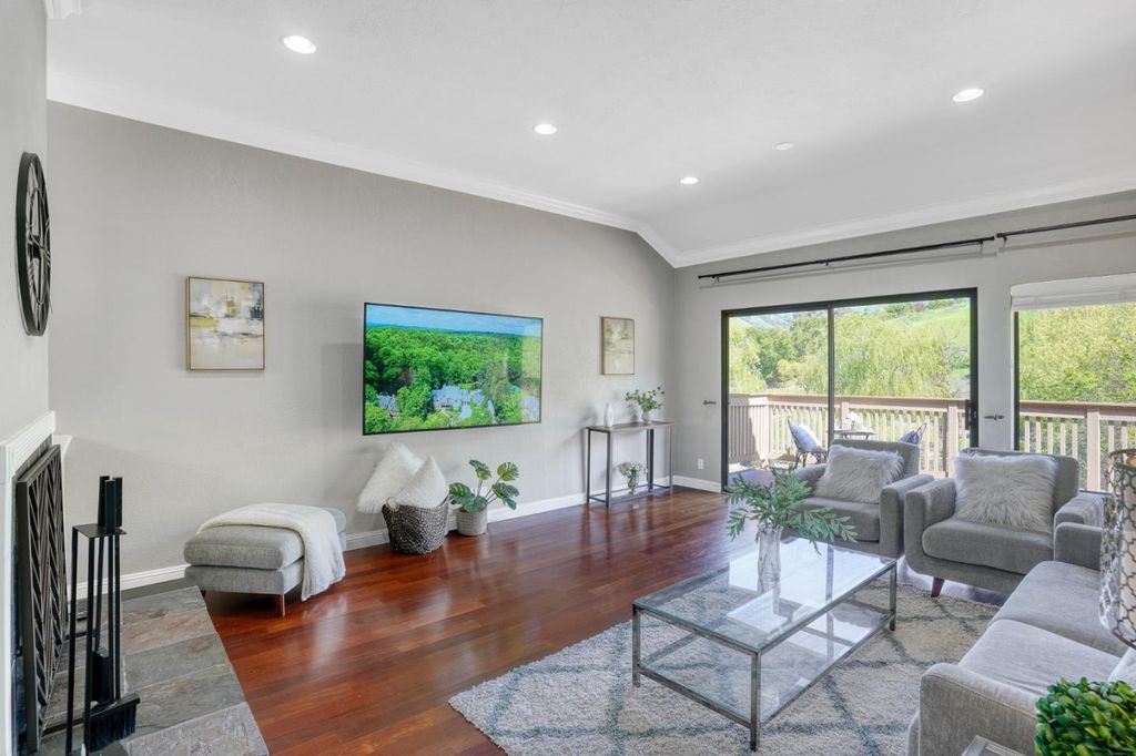 Charming townhouse nestled in the scenic foothills near Mt. Hamilton and Alum Rock Park, offering beautiful mountain views and a peaceful community setting. Mountain Views from Family room, Balcony and Master Bedroom.The home features a functional layout with a desirable primary bedroom on the main level with ample closet space. The bright family room showcases high ceilings, a fireplace, and abundant natural light. Upstairs offers two well-sized bedrooms and a full bath. All bedrooms feature carpet flooring for added comfort. Additional highlights include recessed lighting, central heating and A/C, indoor laundry, and a 2-car garage. A private fenced courtyard with garden area provides great outdoor space.Community amenities include a pool, clubhouse, pond, and walking trails. Conveniently located with easy access to major highways and just a short drive to Downtown San Jose, shopping, and dining.